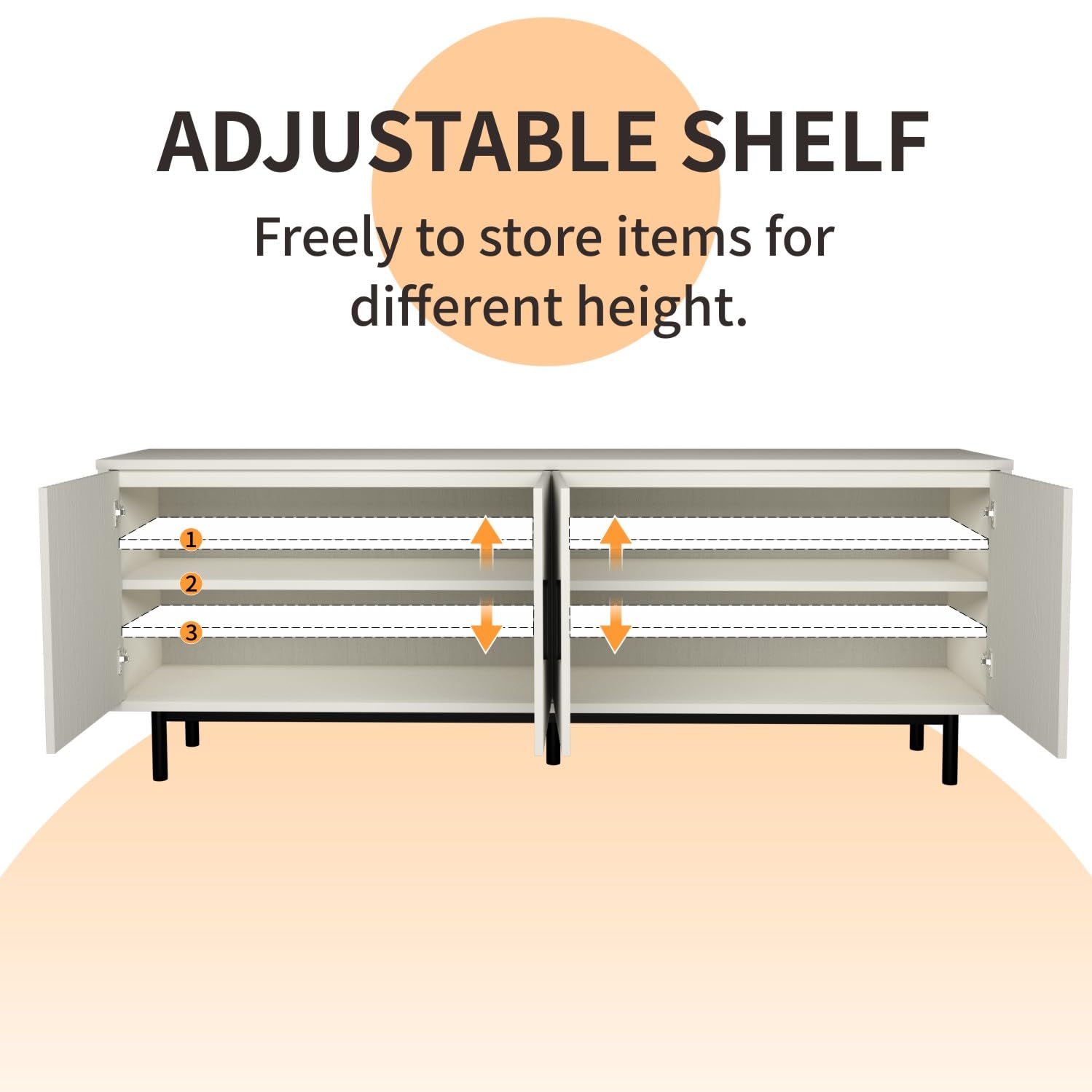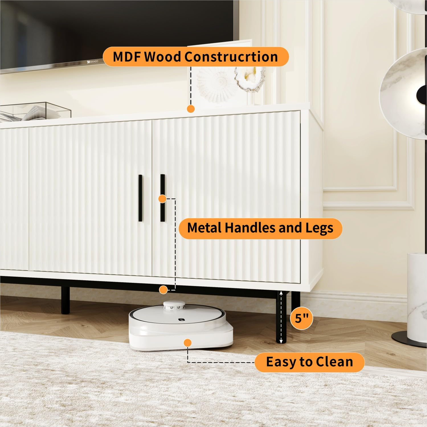 MUUEGM 70" Fluted TV Stand for TVs up to 80 Inches, Entertainment Center with Storage, Adjustable Shelf, Modern TV Console for Living Room and Bedroom, 70" W x 15.75" D x 25" H, White
