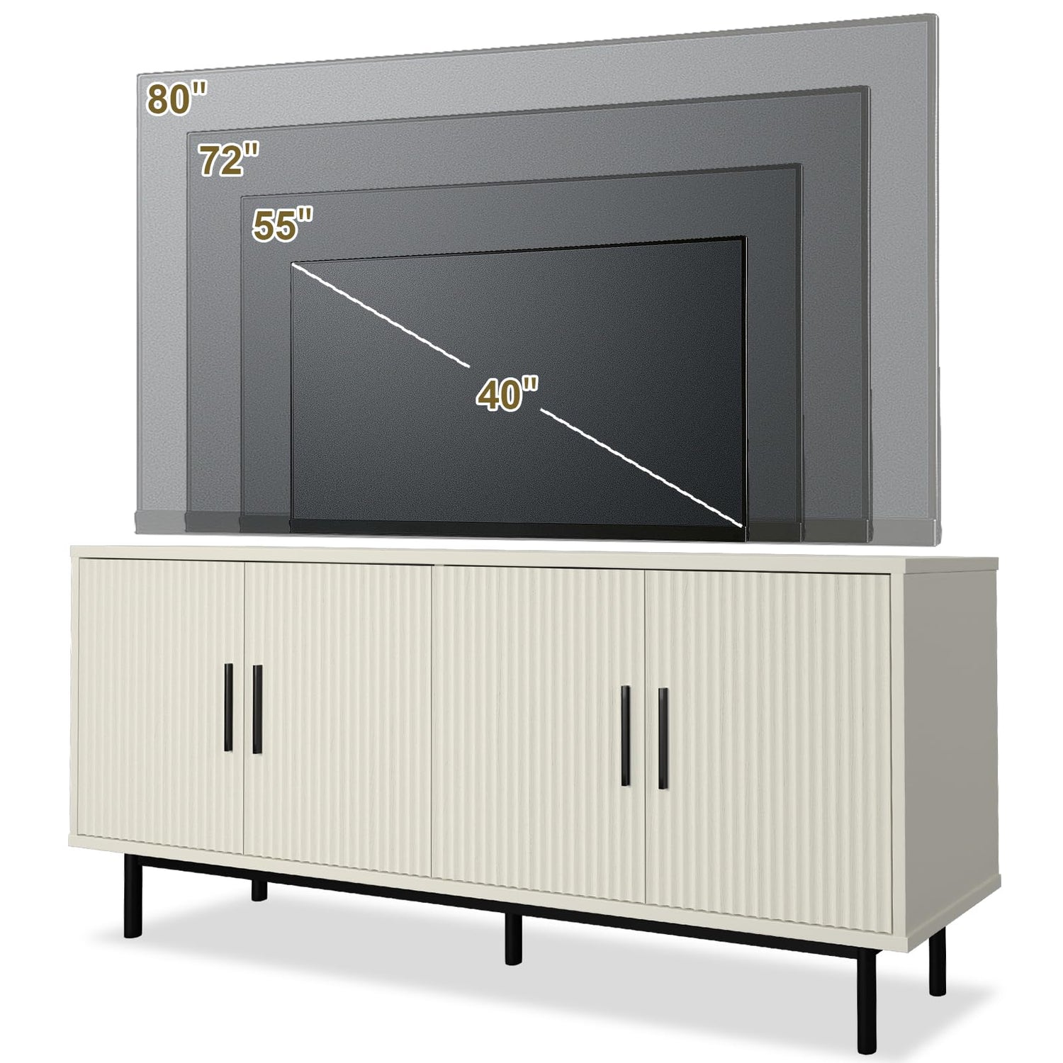 MUUEGM 70" Fluted tv Stand with Storage for Living Room, Entertainment Center Modern TV Stand for TV Up to 80 Inch, Television Media Console Table with Fluted Door and Adjustable Shelf, White