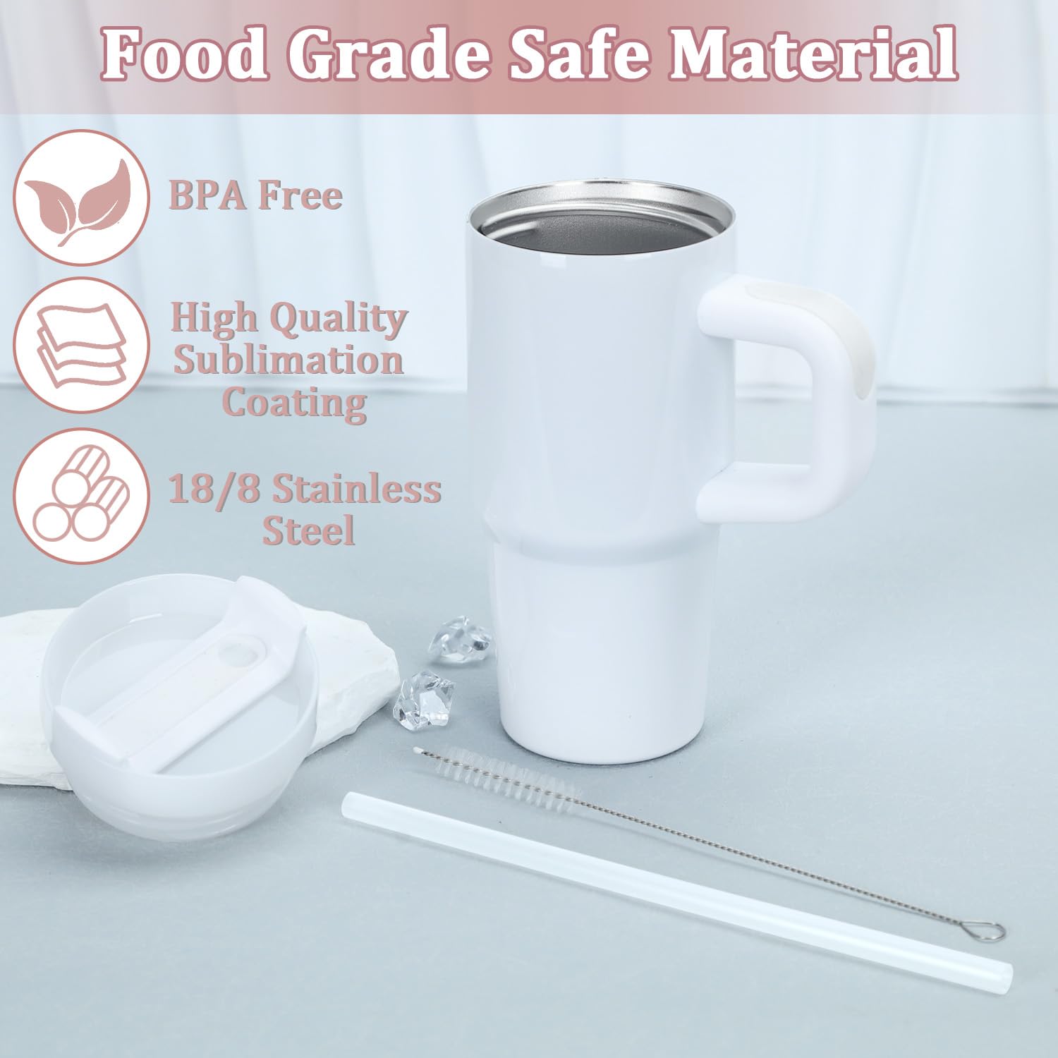 - 【Food-Grade Safe Material】 This 14 oz sublimation tumblers is made of 18/8 stainless steel, and the handle, lid and straw are BPA-free to ensure the safety of your drinks.