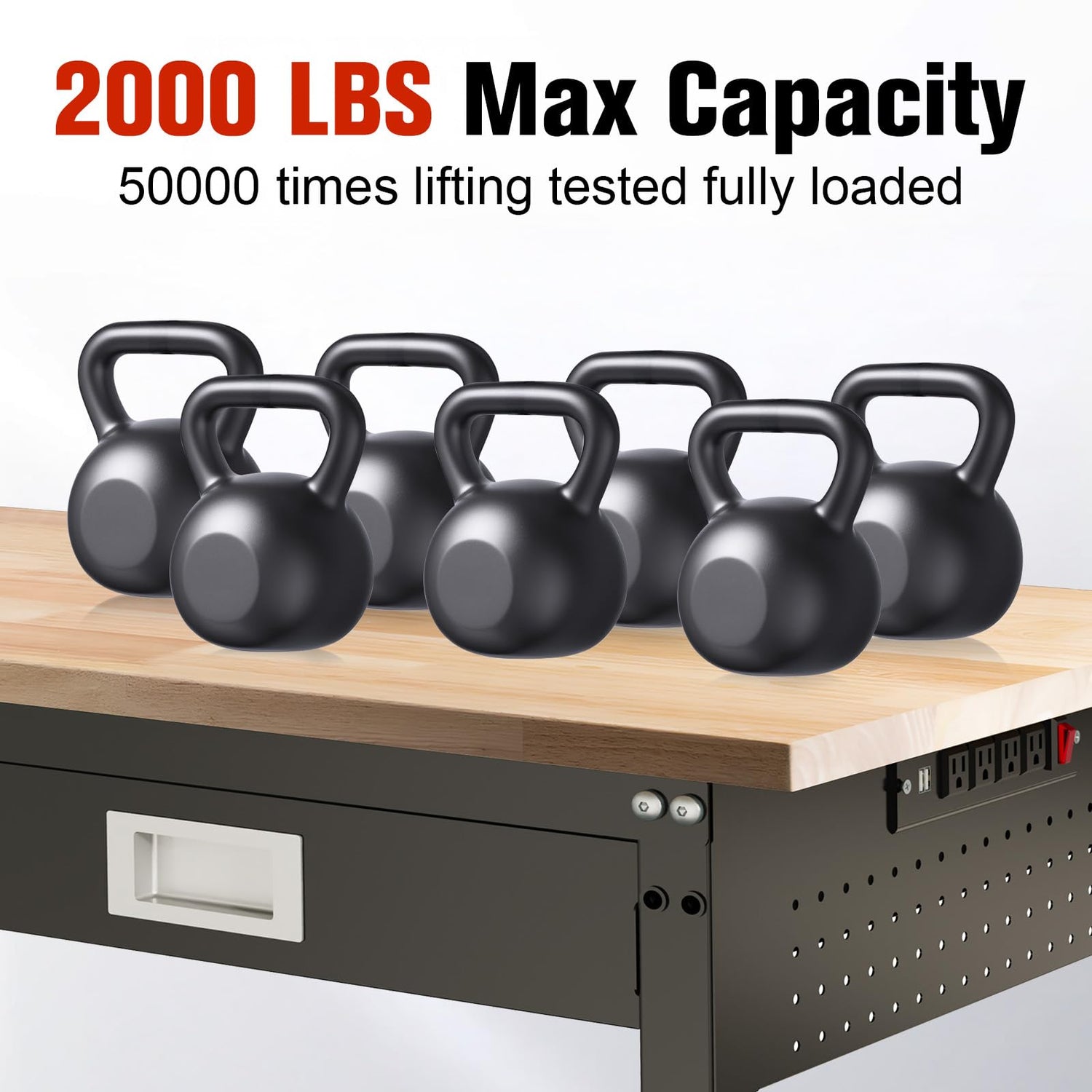 - Power Outlets and Strip Light: The workbench comes with ETL certified power outlets for added safety and durability.4 AC outlets, 2 USB ports, and a cord length of 6.6 inches, making it easy to use a variety of appliances and light fixtures. No need to search for external outlets or deal with messy cords. Comes with a strip light to help you work better in dimly lit environments.