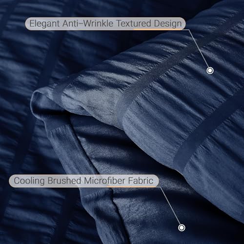 MUXHOMO 7 Pieces Queen Comforter Set, Seersucker Bed in a Bag Queen Size, All Season Luxury Bedding Set with Comforter, Flat Sheet, Fitted Sheet, Pillowcases & Shams, Navy Blue