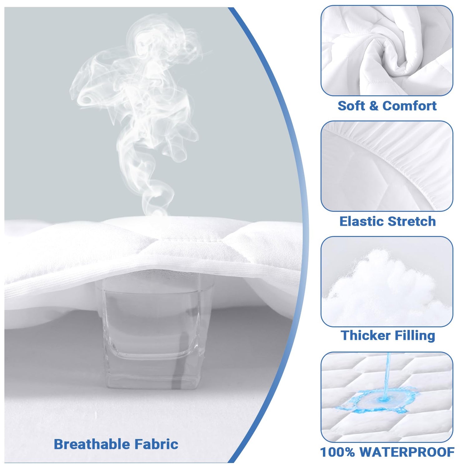 MUXHOMO King Size Mattress Protector, 100% Waterproof Quilted Mattress Cover King Size Bed, Noiseless Soft & Cooling Mattress Pad Cover, Deep Pocket 6"-21", White
