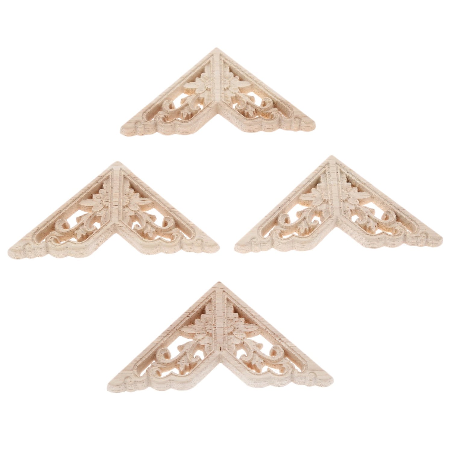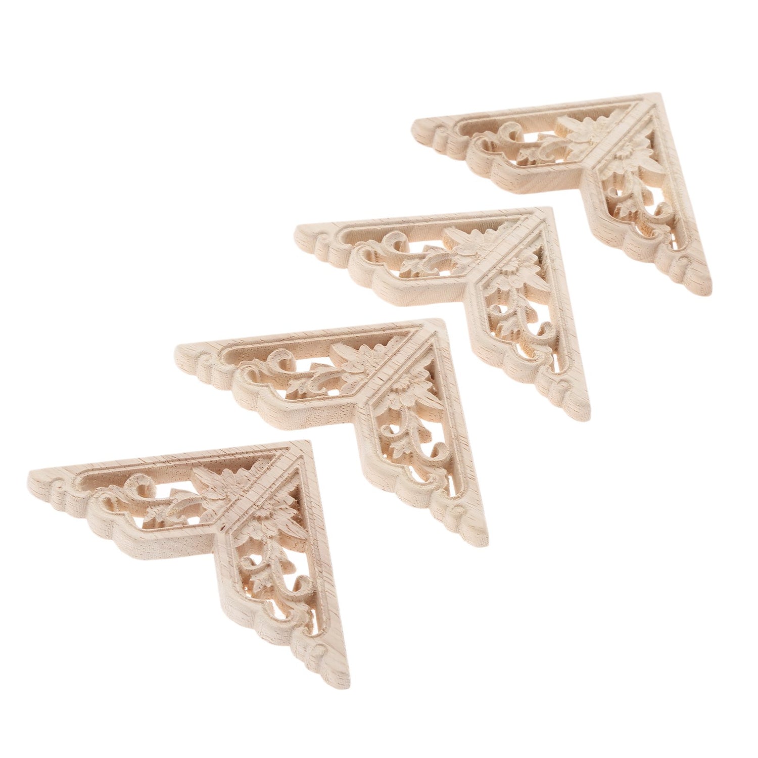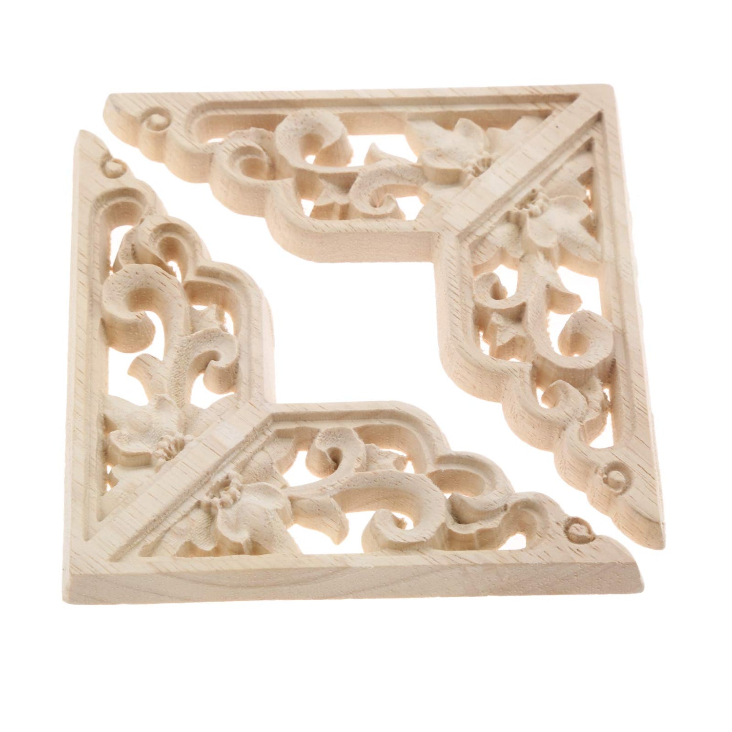 MUXSAM Wooden Decorative Appliques Onlays, 4-Pack Unpainted Wood Caravings Decals Inlays Overlays Corners Decor for Cabinet Dresser Cupboard Mirrors Walls Doors DIY Craft Project, 8x8cm/3.15"x3.15"