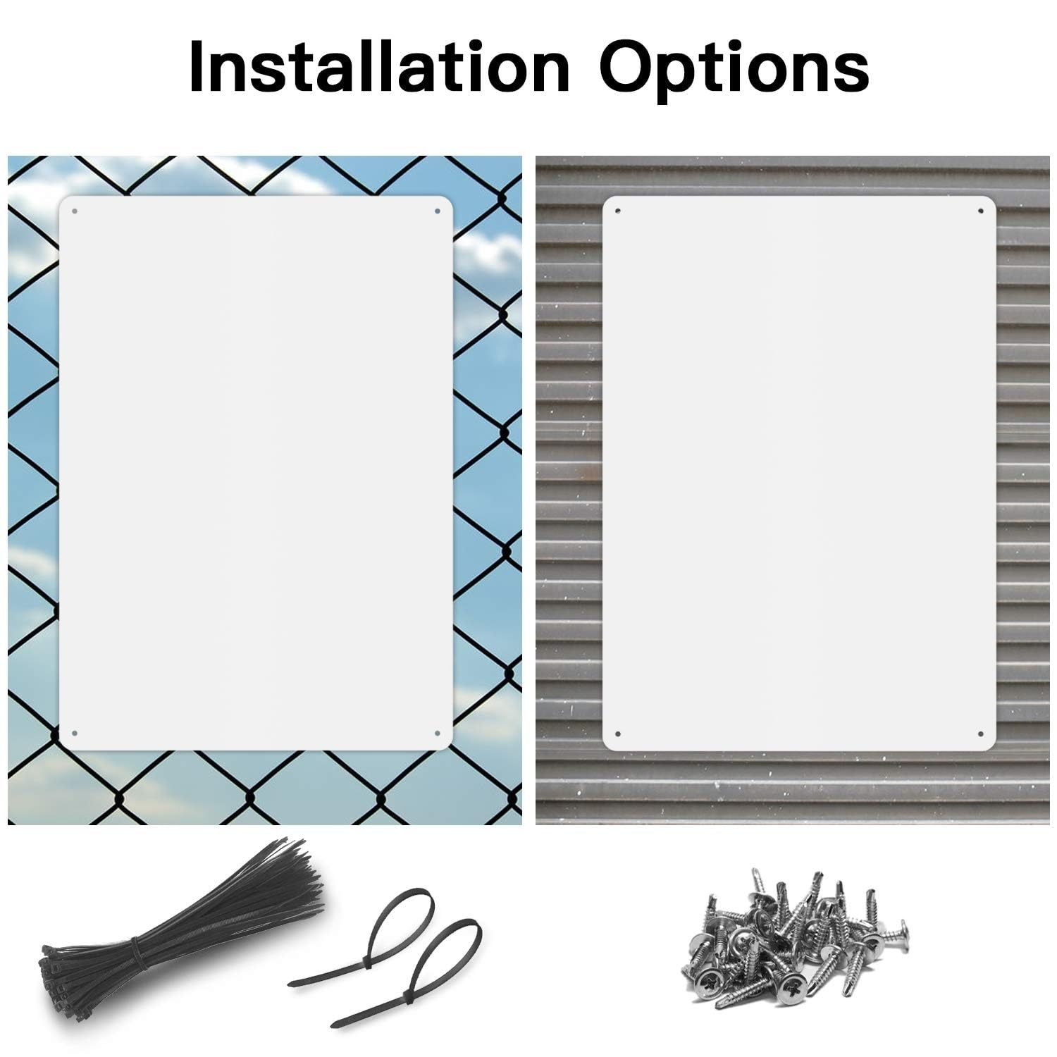 - Easy Mounting: "White Color Blank" Sign has 4 pre-drilled holes, so you have the option to install the security sign with a screw or nail. It Installs securely on any surface outdoor or indoor – gates, fence, brick, concrete, wood, siding, or drywall.