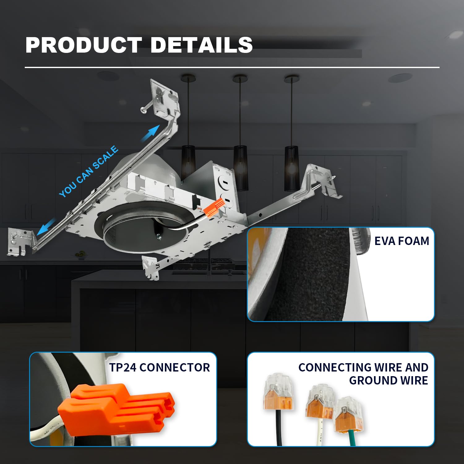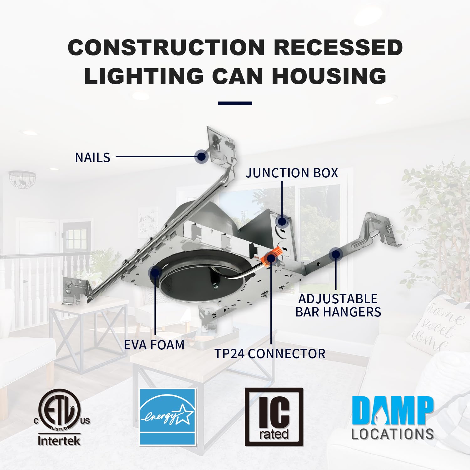 - 【Wide Application】You can perfectly fit this recessed light housing in different types of structural layouts with the adjustable fast-nail hanger bars, making it ideal for both residential and commercial new construction projects.