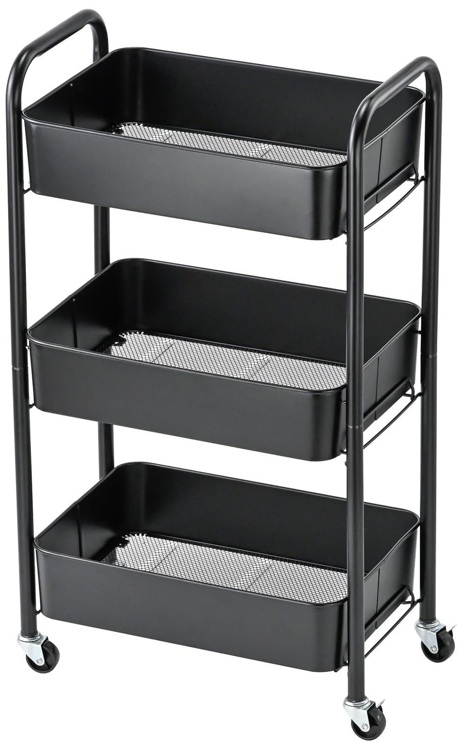 Details: MWQ Heavy Duty 3-Tier Metal Utility Rolling Cart, Multi-Functional Storage Trolley for Office, Living Room, Kitchen,Black