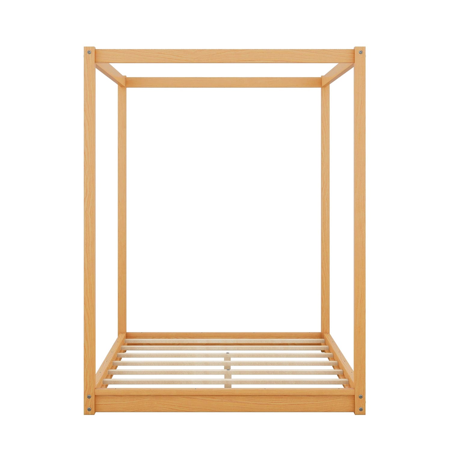Modern Queen Size 4-Poster Canopy Bed Frame in Natural Wood Finish