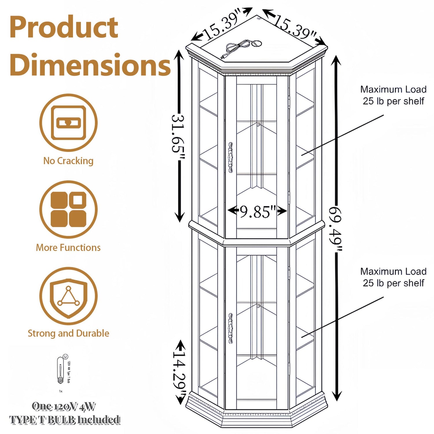 - Strong & Sturdy Construction: Rely on the black curio cabinet for collectibles for long-lasting use; Made from quality manufactured wood; Supports up to 120 pounds total; Each shelf holds 25 pounds; Magnetic doors keep valuables secure