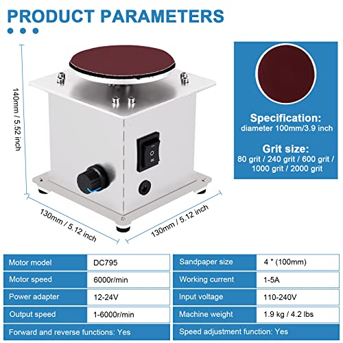 - 【4 inch disc sander】The high-speed sanding disc machine is equipped with 10 pieces of 3.9inch sandpaper: 60 mesh - 5000 mesh. It can be used for rough grinding and fine grinding of various metals, wood, scissors and plastics.
