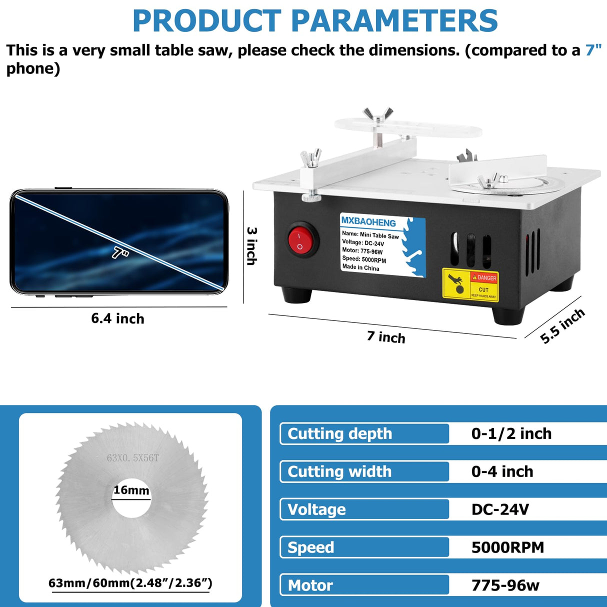 - 【WARRANTY】MXBAOHENG mini table saws have one year warranty, if you have any questions, please feel free to contact us, we will reply you as soon as possible.