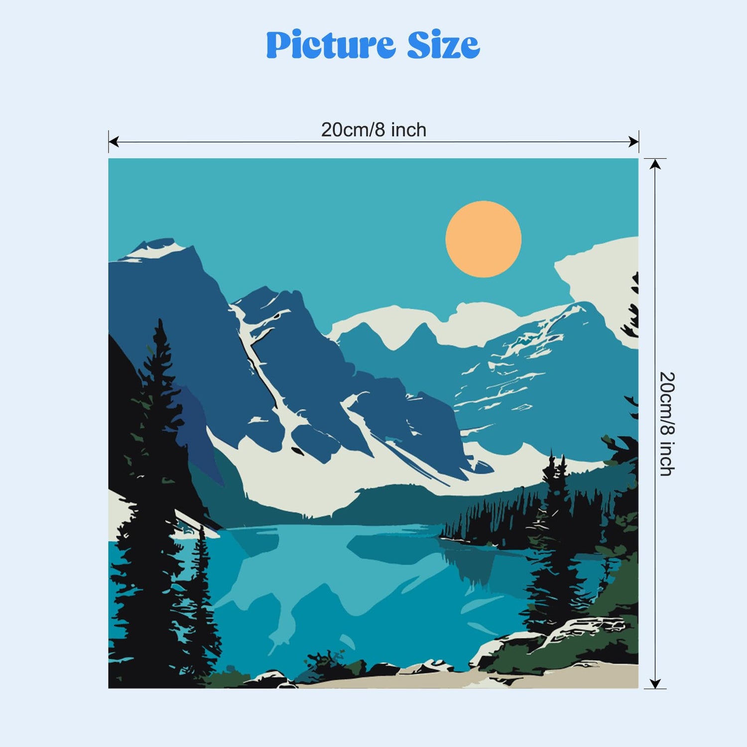 MXJSUA 4 Pack Moon Mountain Lake Paint by Numbers Kit with Framed Canvas for Ages 6-12 Kids, Paint by Numbers Kits for Children Beginners, Acrylic Oil Painting for Home Wall Decor Gift (8x8 inch)
