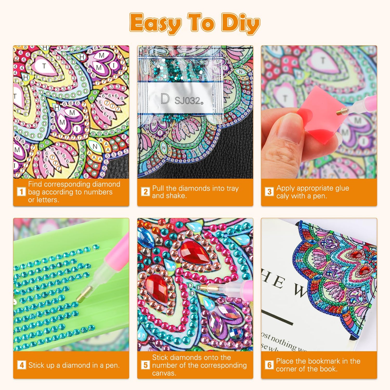 - Contain All Tools: Our diamond picture bookmarks contain all tools: 6 diamond gem painting corner bookmarks, 1 diamond pen, 1 diamond tray, 1 clay and enought special-shaped diamonds