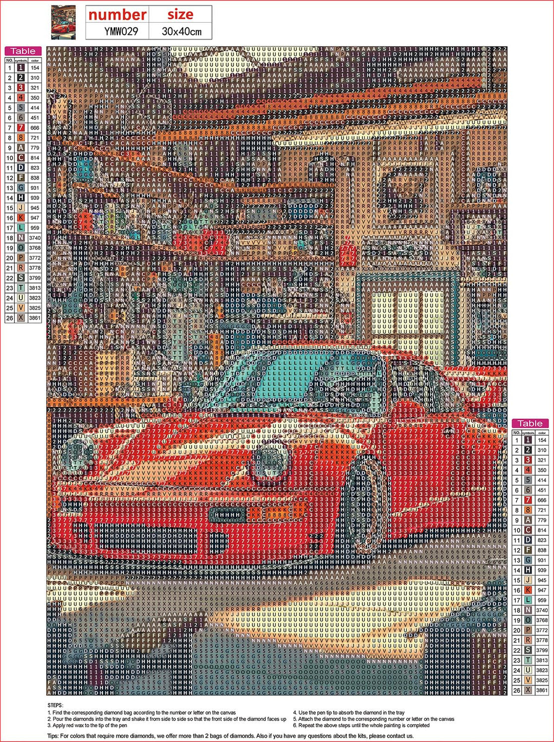 MXJSUA DIY 5D Diamond Painting Kits for Adults, Red Sports Car Diamond Art Painting Full Drill Crystal Rhinestone Embroidery Craft Kits for Home Wall Decor Gifts, 12x16inch
