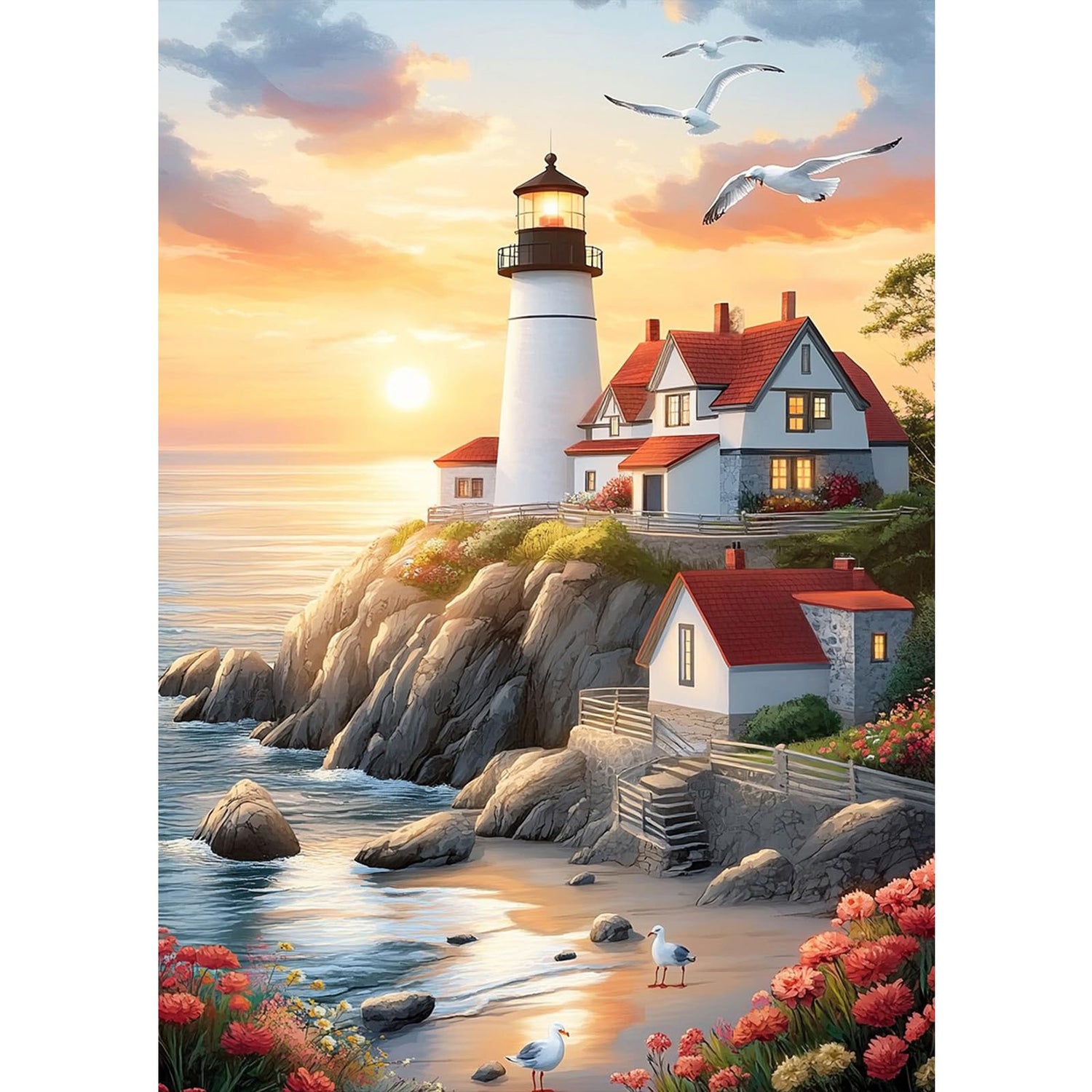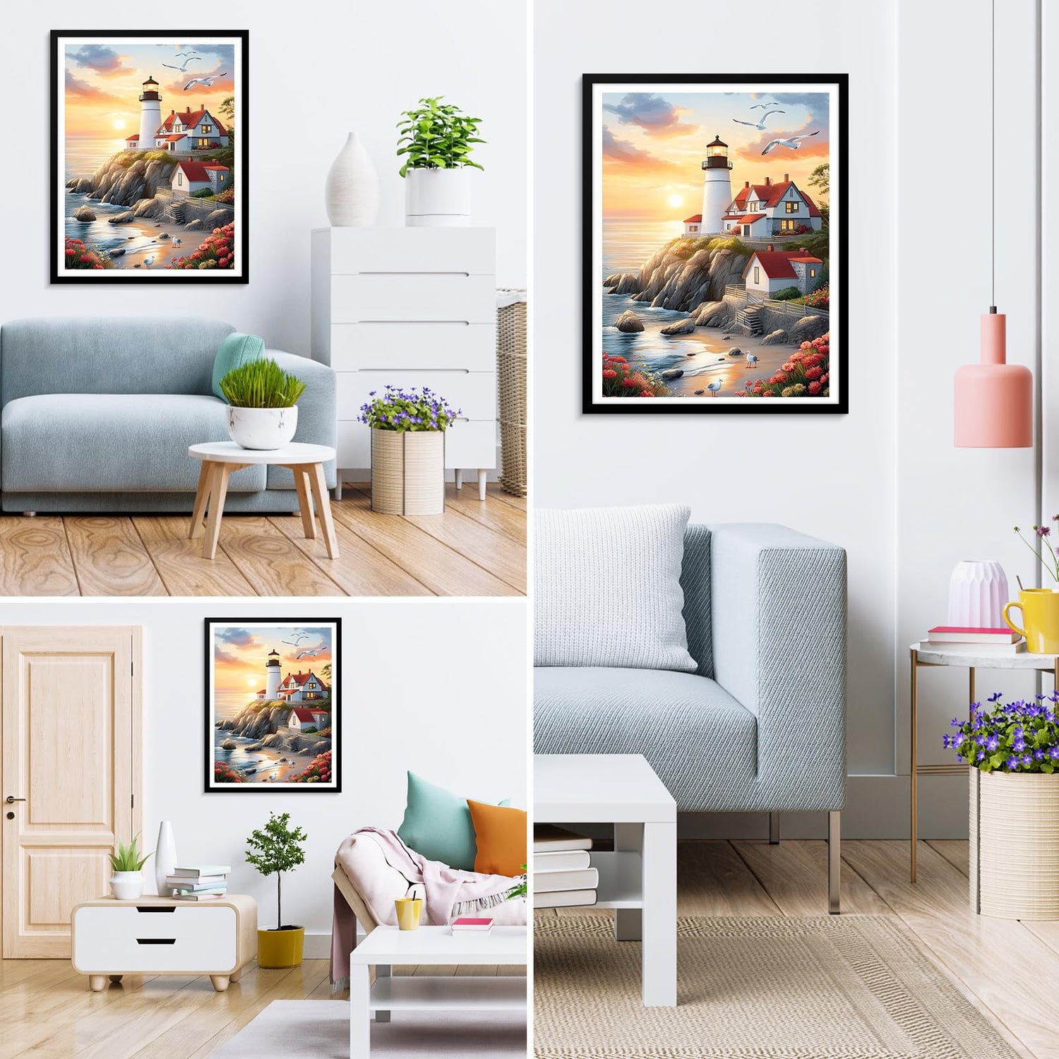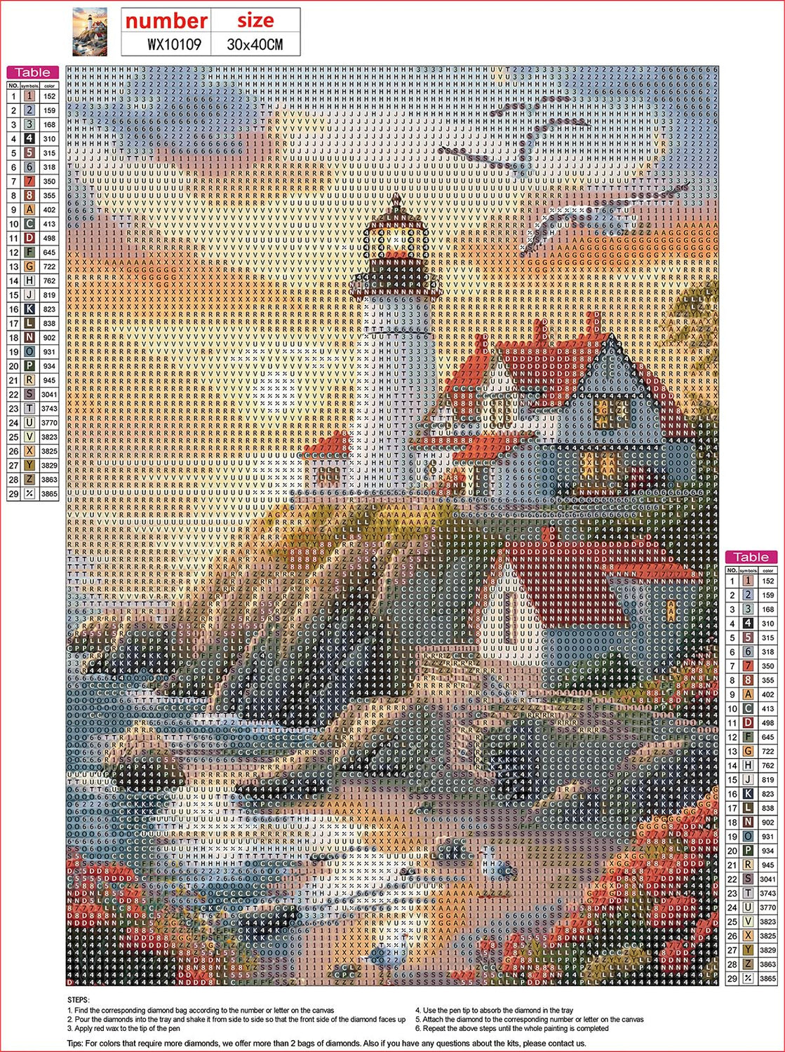 MXJSUA DIY Lighthouse at Sea Diamond Painting Kits for Adults, Diamond Gem Art Painting for Beginners, Diamond Picture with Full Round Drill Dots Craft Set Gift, 12 * 16 Inch