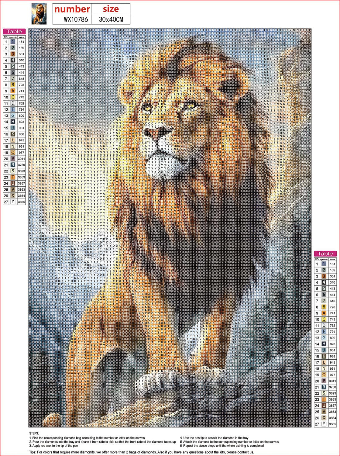MXJSUA Lion Diamond Art Painting Kits for Adults, Full Drill Diamond Dots Paintings for Beginners, Round 5D Paint with Diamonds Pictures Gems Art Painting Kits DIY Crafts Kits 12x16 Inch