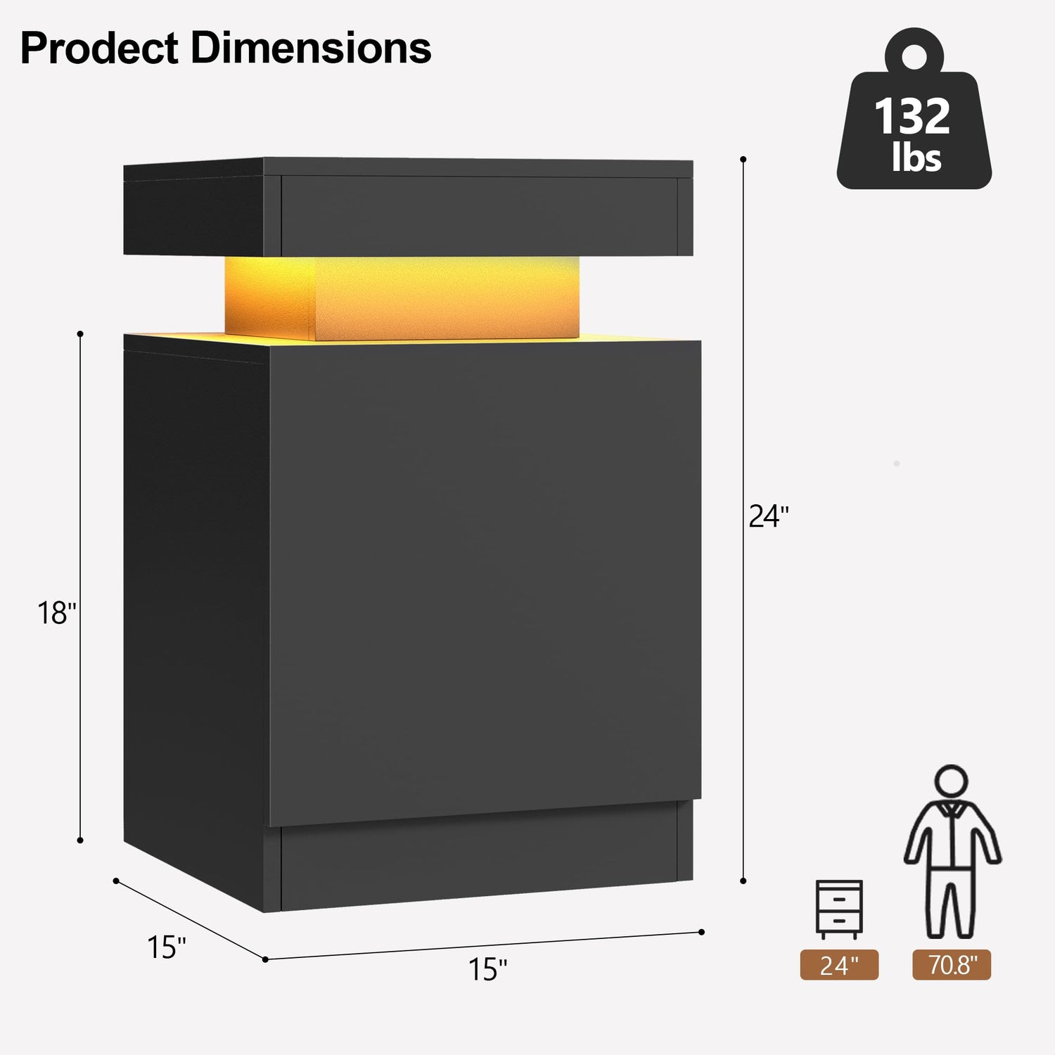 - Adjustable Light: These led nightstands offer adjustable brightness levels for the LED lights, allowing you to customize the lighting to suit your preferences or activities. Whether you need a soft, ambient glow or a brighter light for reading, you can easily adjust the brightness with the remote