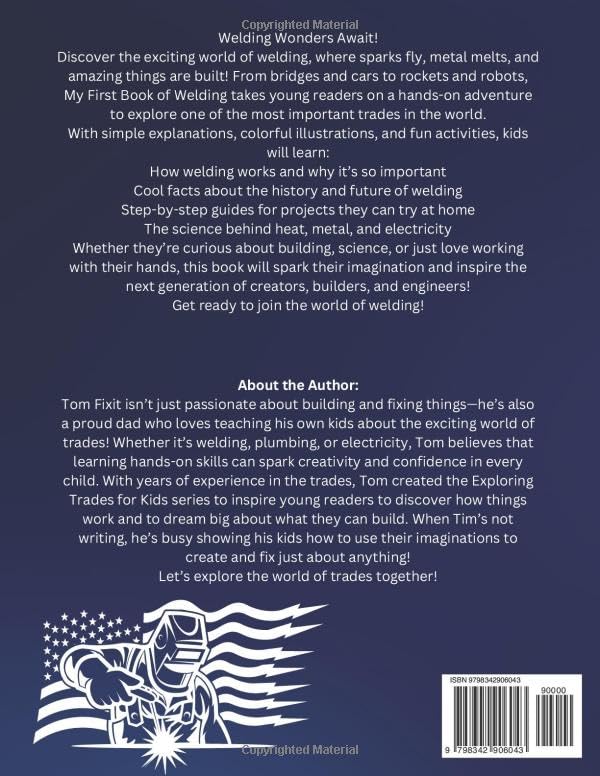 Details: Get ready to spark your imagination and dive into the exciting world of welding! My First Book of Welding introduces young readers to the fascinating trade of welding, where science, technology, and creativity come together. With simple explanations, colorful illustrations, and fun activities, this book shows how welders build everything from cars and bridges to rockets and robots.