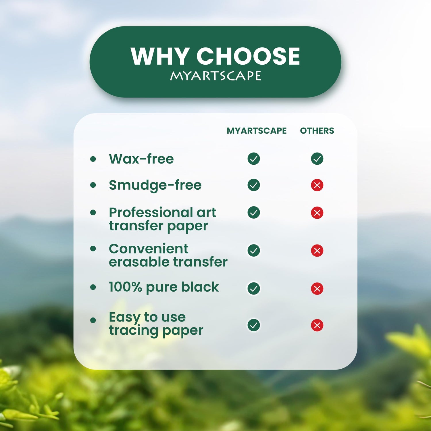 MyArtscape Graphite Transfer Paper, 20 Black Sheets - Wax Free - Erasable - Smudge-Free - Ideal for Drawing, Tracing and Watercolor Transfer - Premium Arts and Crafts Supplies