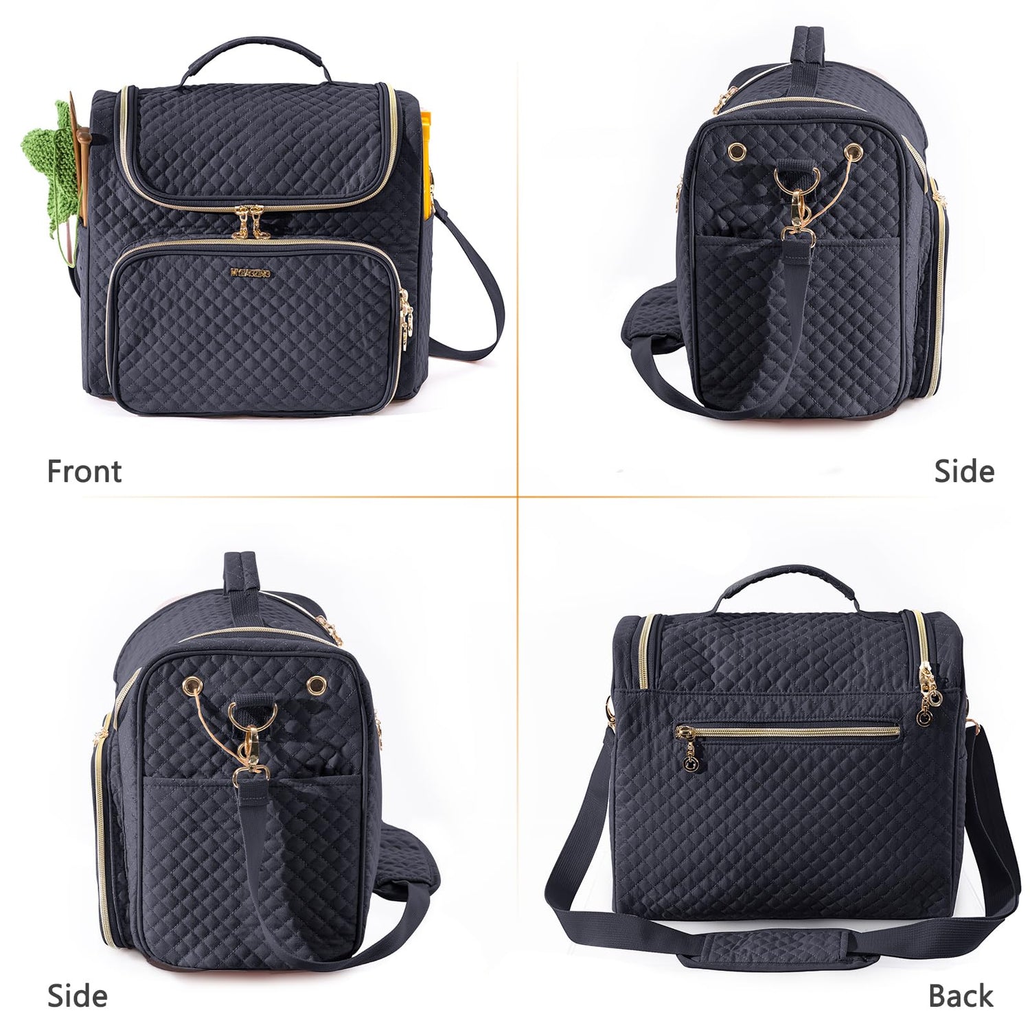 - 【HANDY POCKET】- The crochet storage bag is strategically placed with a zipper front pocket, 2 zipper transparent pockets, two side pockets, and a back zipper pocket to store crochet accessories and crochet hooks.