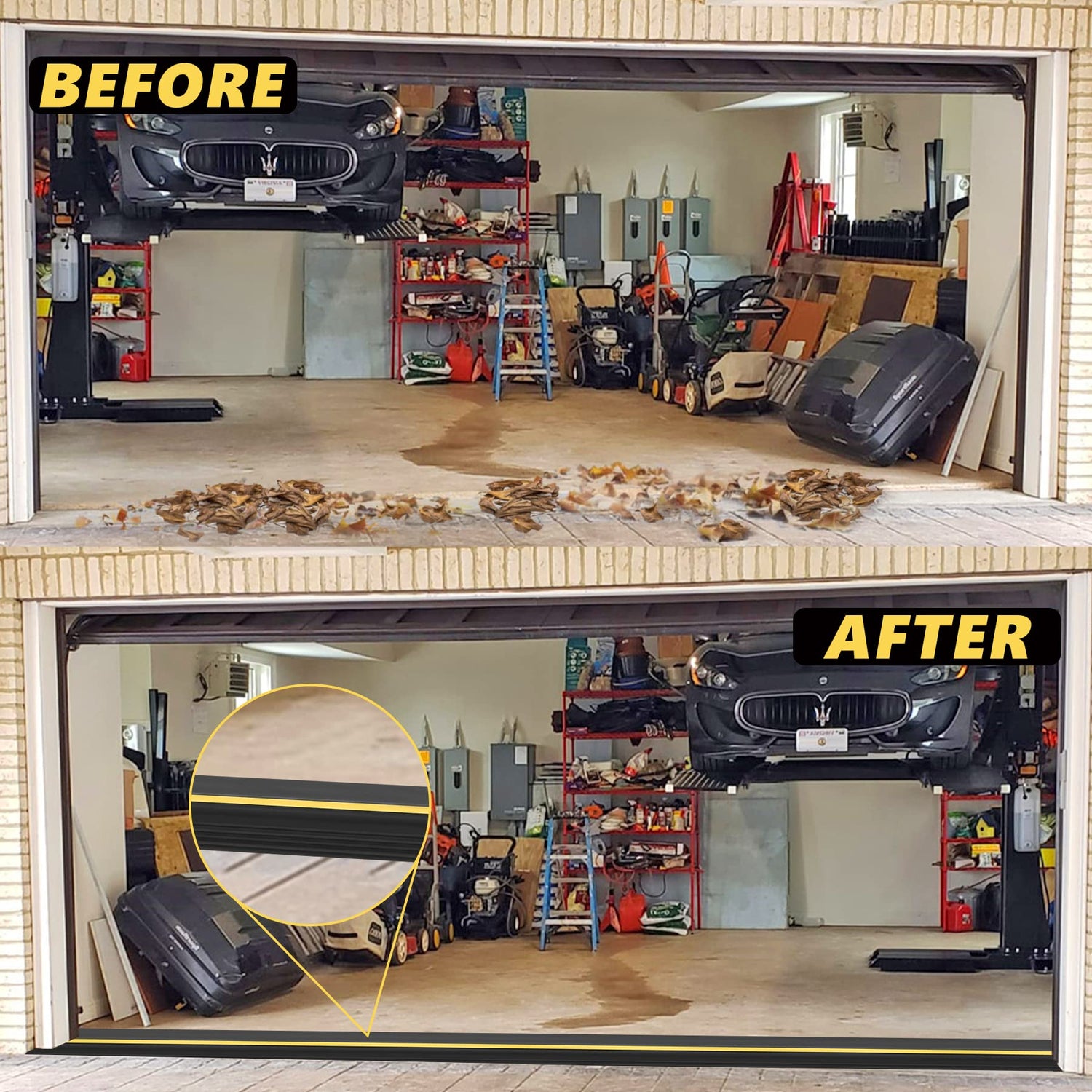 - 【Keep Clean】The 1/2" height garage door Seal bottom rubber threshold prevents sewage, rain, snow, leaves and debris from being blown into the garage. Reduces the time you have to spend cleaning because of the rubbish and leaves blowing in from the wind. Creates a clean, dry and tidy garage for you. Adhesives are offered in two packages. Different packaging adhesives are shipped randomly, please refer to the adhesive you receive.