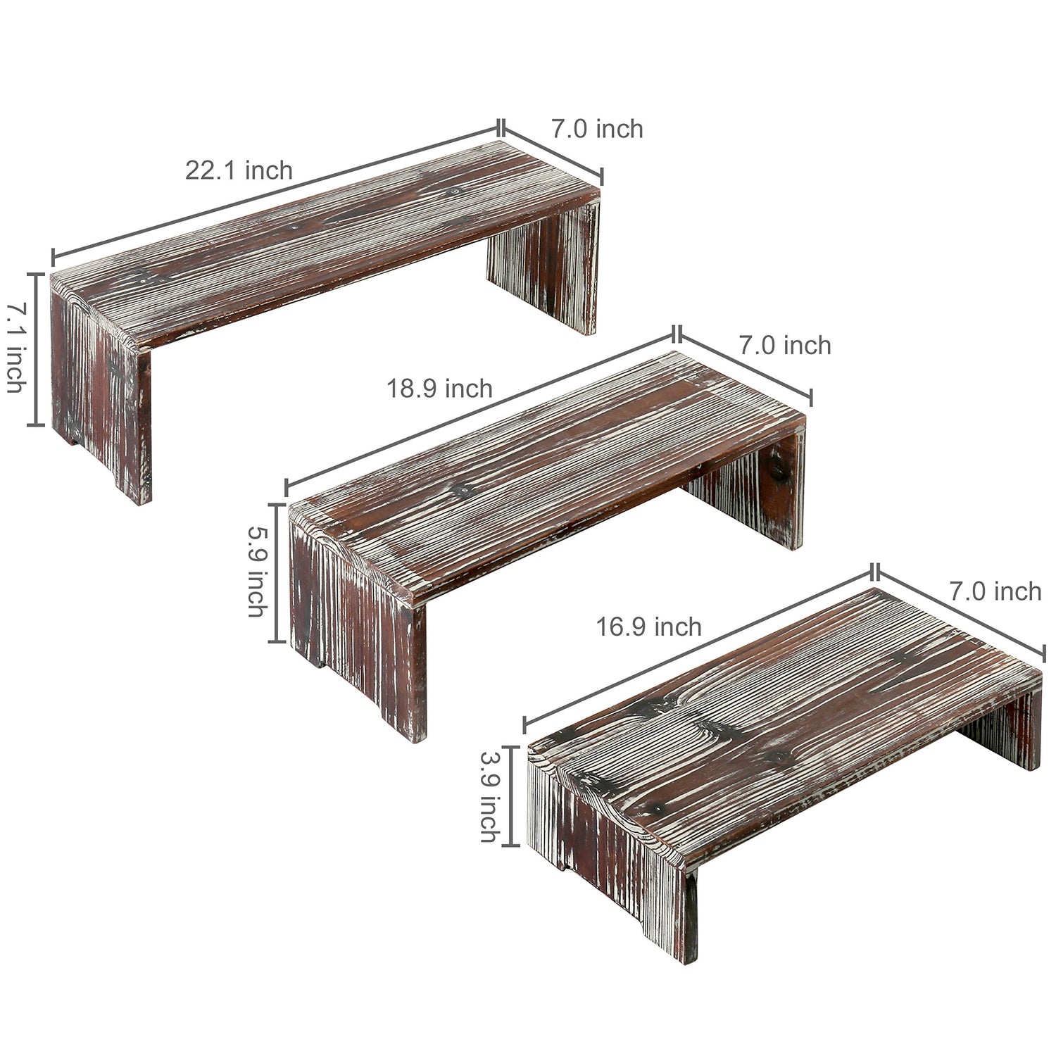MyGift 3-Tier Rustic Torched Wood Dessert Display Risers, Tabletop Nesting Cupcake Stands, Retail Merchandise and Collectible Figurine Shelf, 3 Piece Set