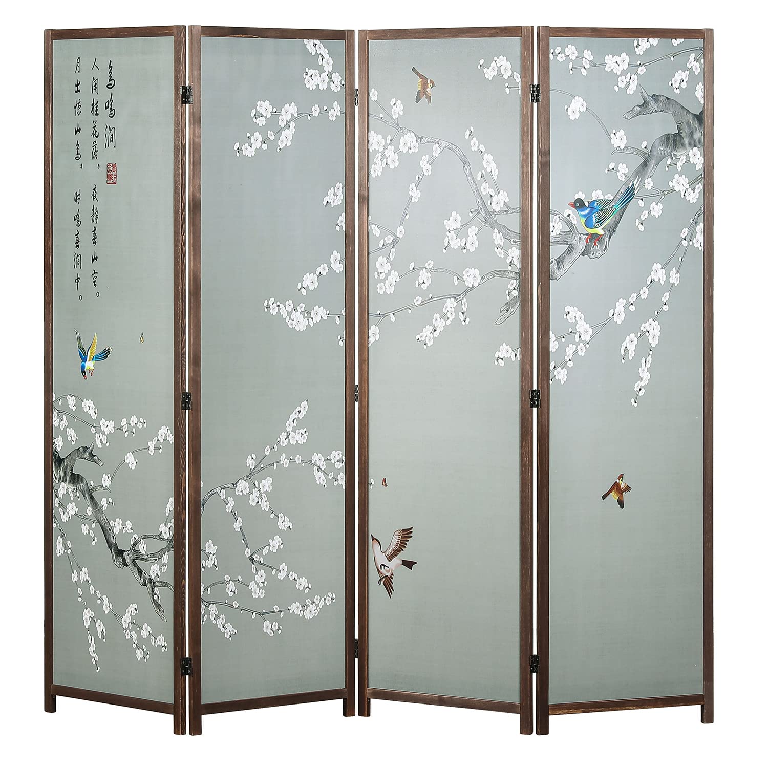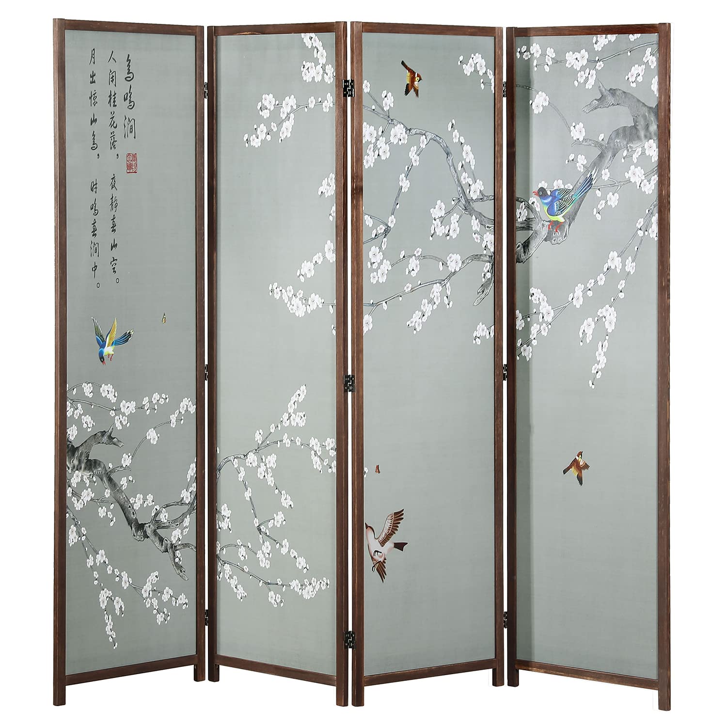 - Asian-inspired cherry blossom design 4-panel room divider partition screen