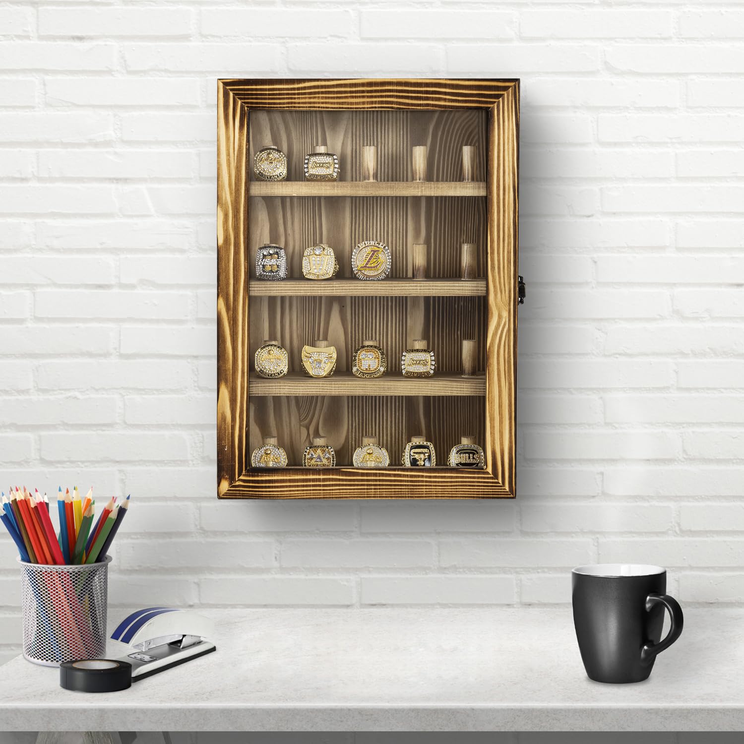 - Featuring 20 built-in pegs that each hold a single large sports championship ring, or several men’s or women’s standard jewelry rings