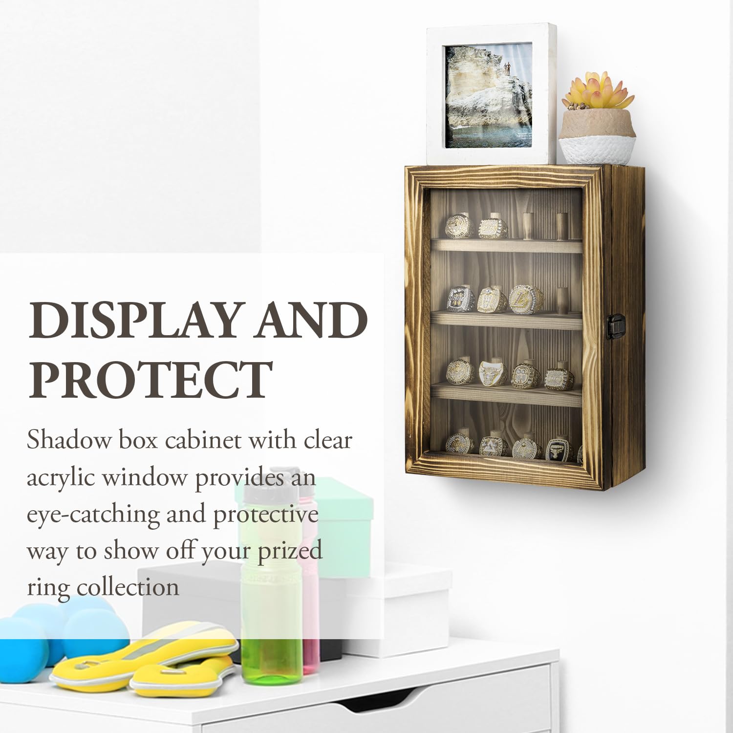 MyGift 4-Tier Wall Mounted Rustic Burnt Solid Wood Sports Championship Ring Holder with Metal Latch Closure, 20-Peg Fraternity, Class Rings Display