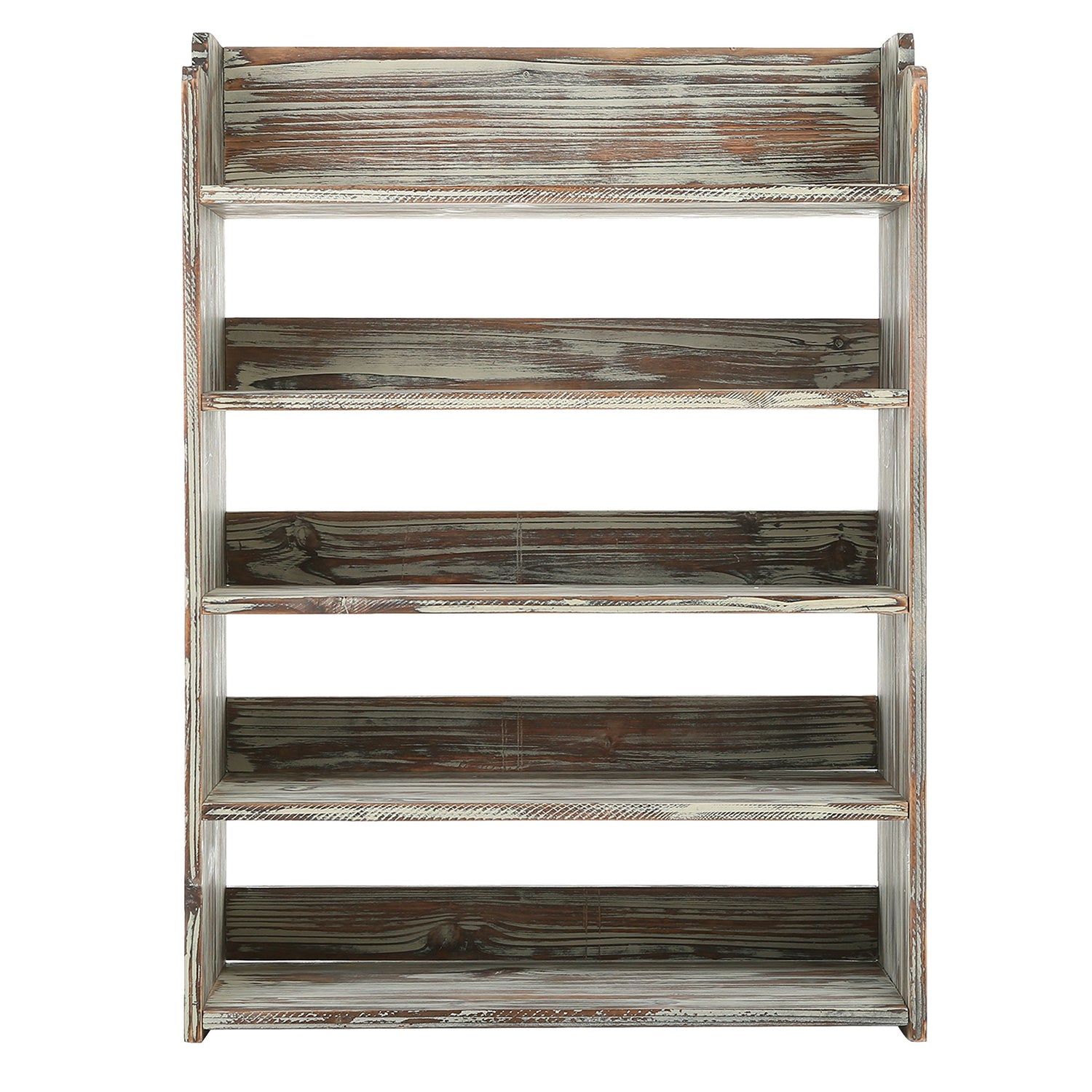 MyGift 5 Tier Rustic Torched Wood Entryway Shoe Rack Storage Shelves, Closet Organizer Shelf