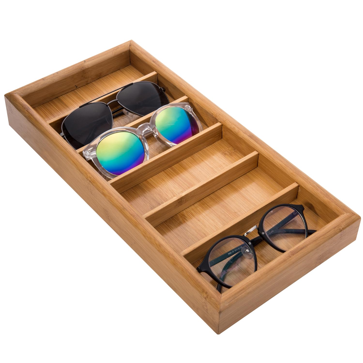 MyGift 7 x 15 inch Modern Bamboo 6-Slot Sunglasses Storage Case, Eyewear Display Tray