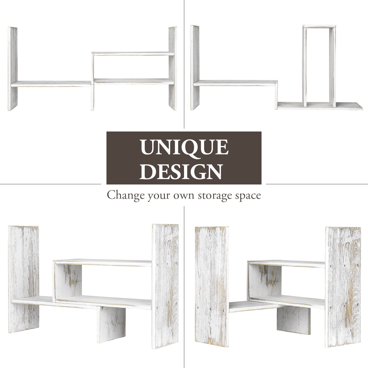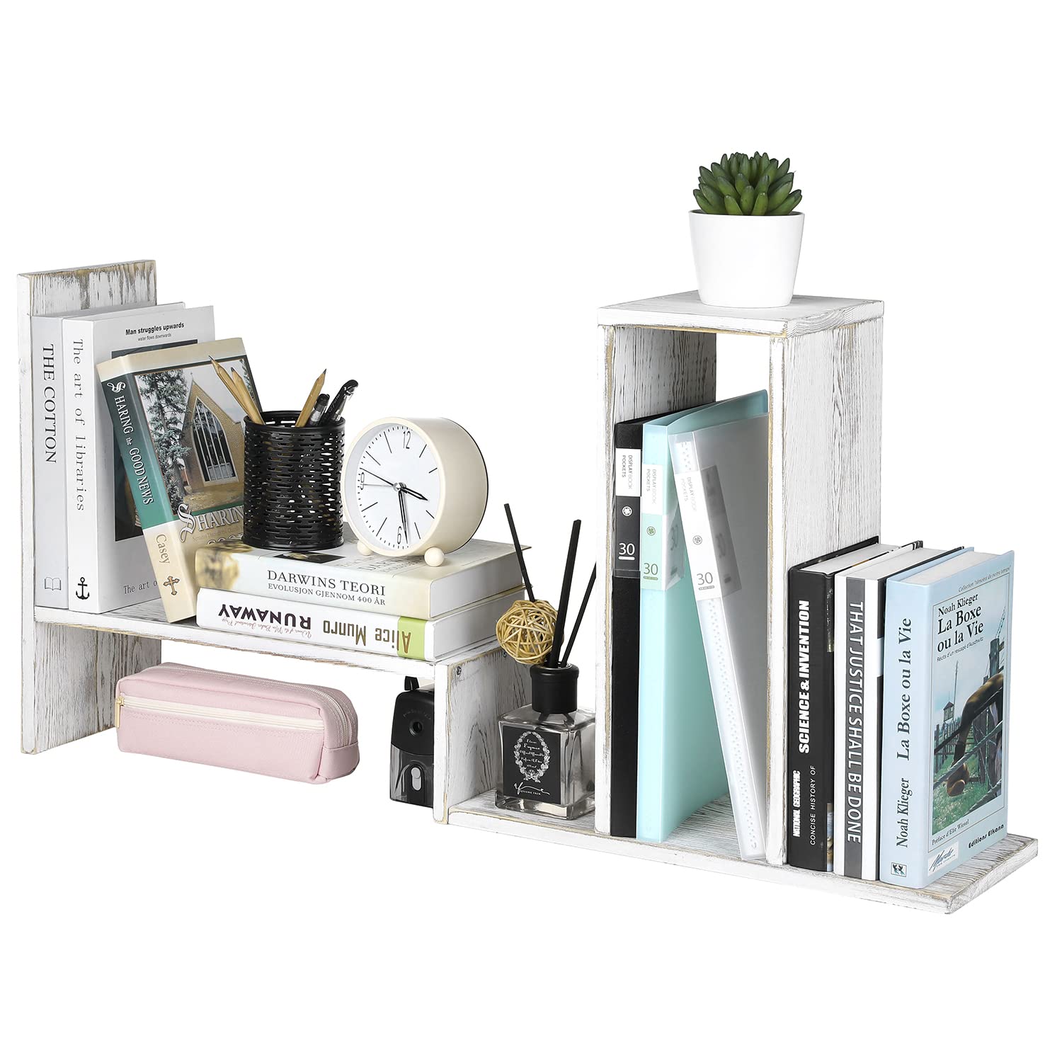 - Rustic distressed solid wood adjustable desktop bookshelf organizer perfect for displaying books, office supplies, small planters and other decorative items