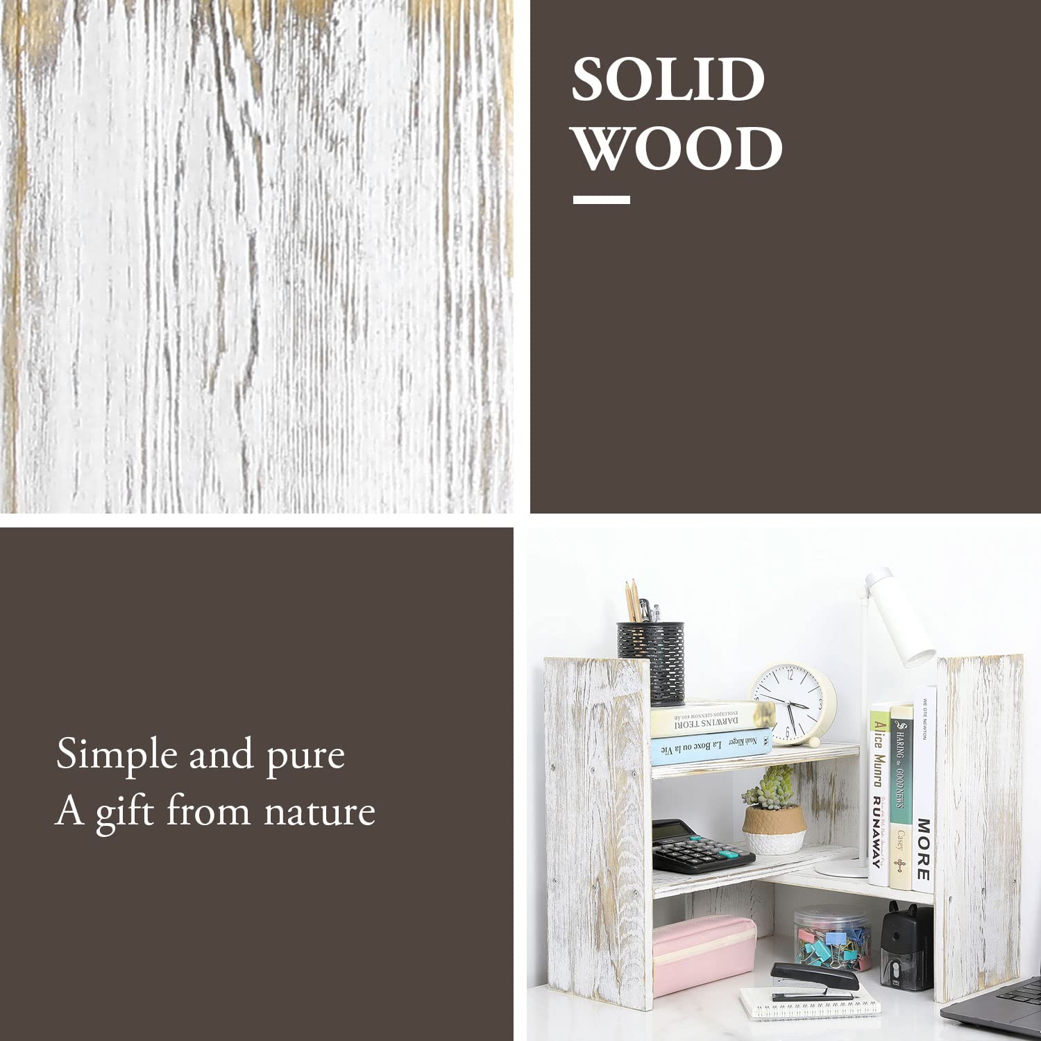 MyGift Adjustable Whitewashed Solid Wood Desktop Storage Organizer Display Shelf Book Rack, Office Desk Bookshelf