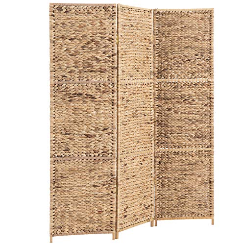MyGift Handwoven Seagrass 3 Panel Room Divider Screen with Wood Frame, 6FT Folding Partition Room Divider, Brown 57.25''W x 70''H