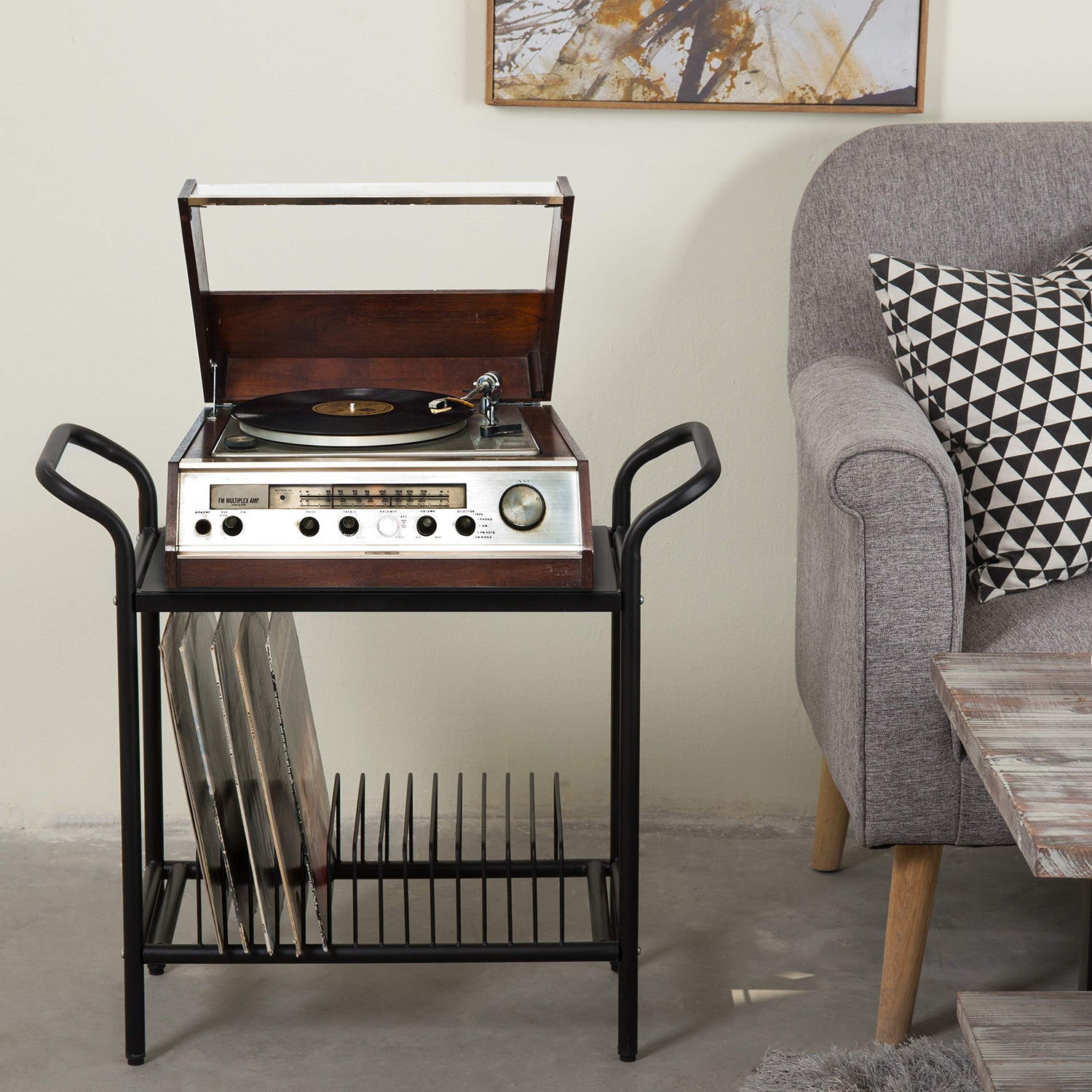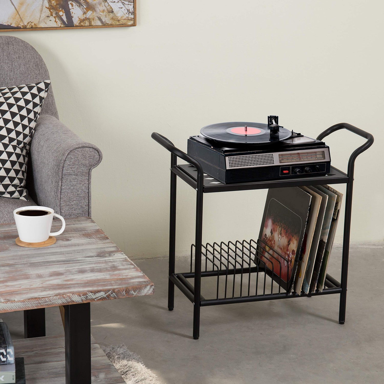 - A stylish yet functional way to organize your record sleeves, record player, speakers and decorative decor