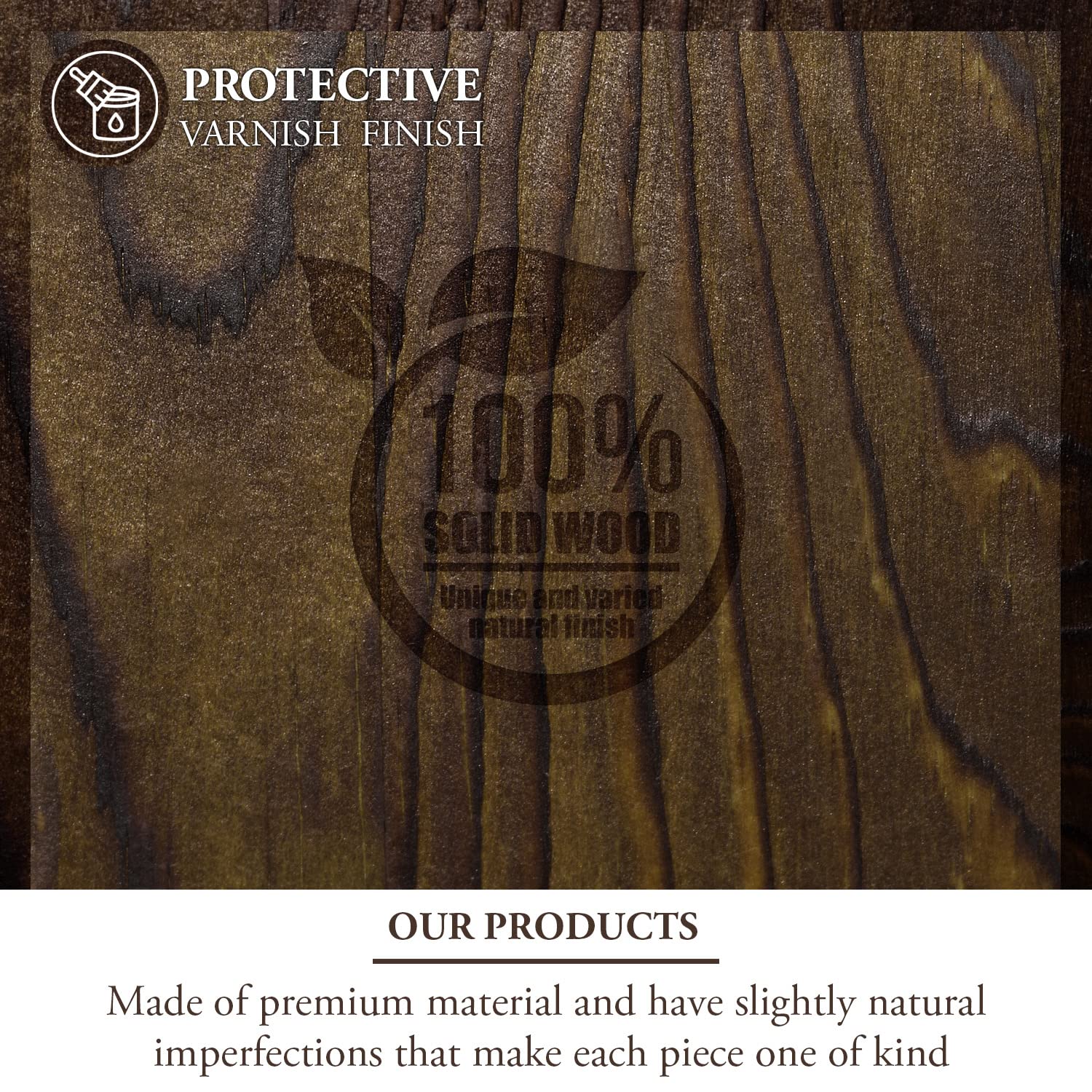 - Solid wood construction in a rustic burnt finish complements décor at home, events venues, and commercial settings **Due to natural material and color finish process, color and wood grain may vary slightly than shown in listing**