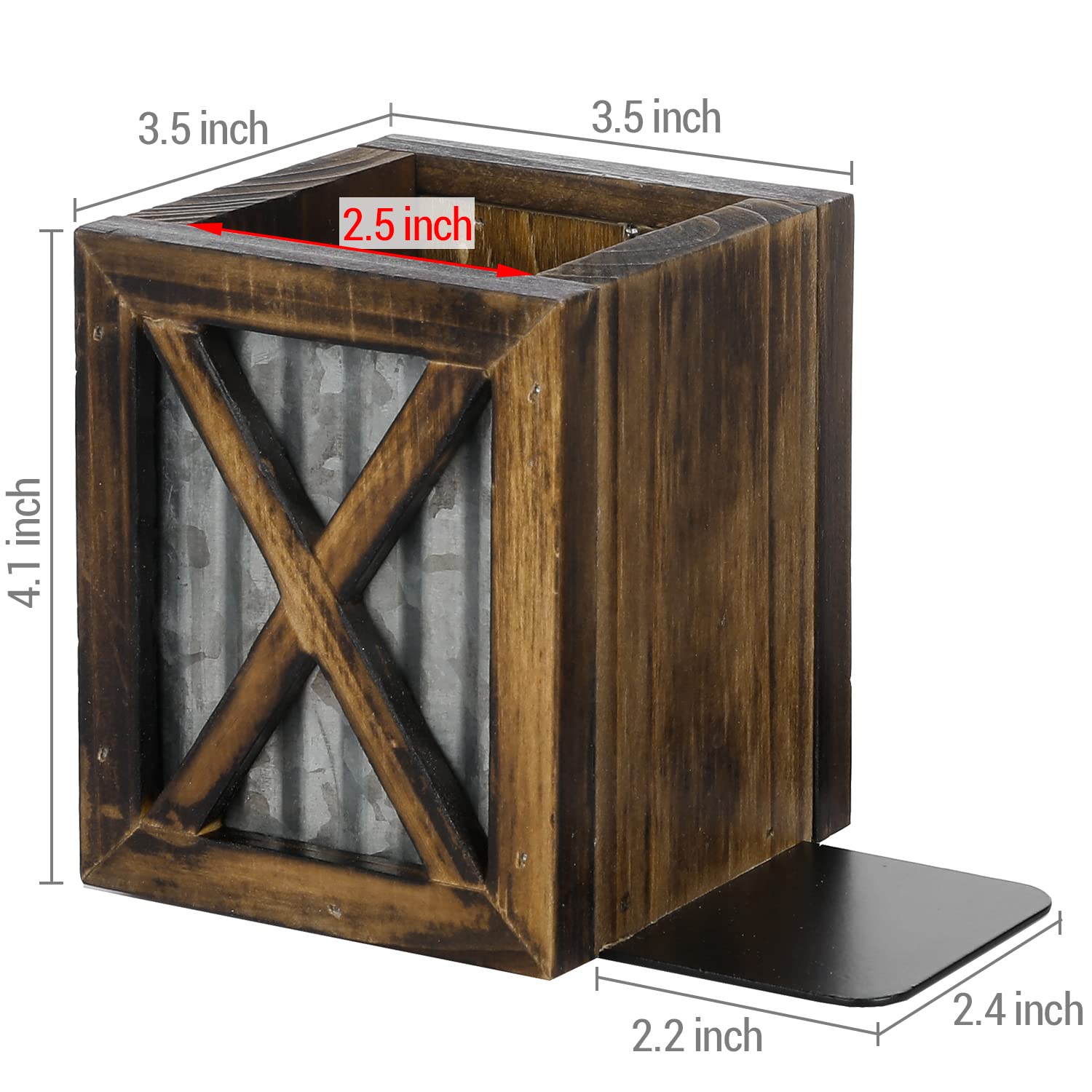 MyGift Rustic Burnt Wood Decorative Bookends with Corrugated Galvanized Metal Accent, Desktop Book Ends with Pen Holder Pencil Cup Stationery Storage Bins for Home Office, Classroom, Dorm Room, 1 Pair