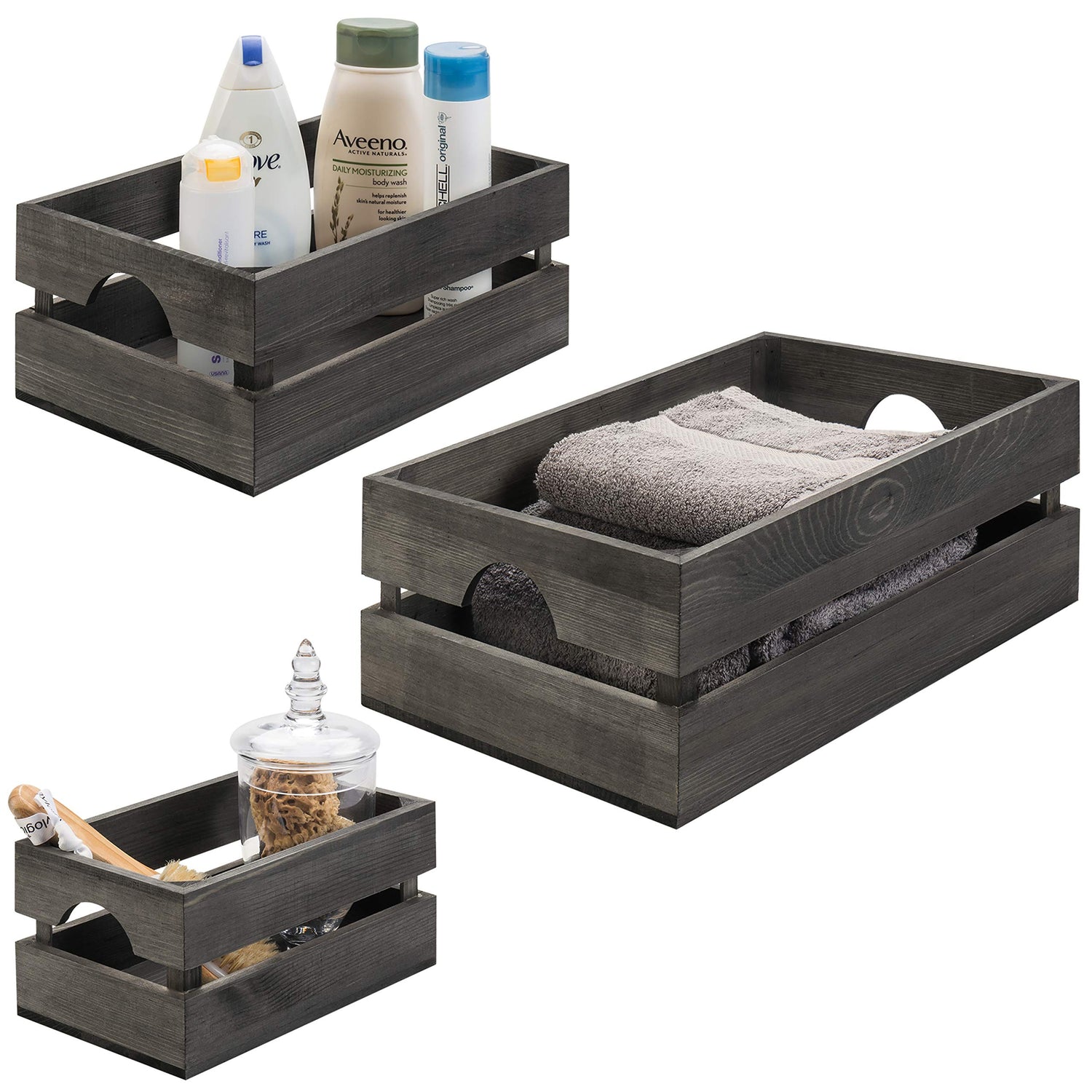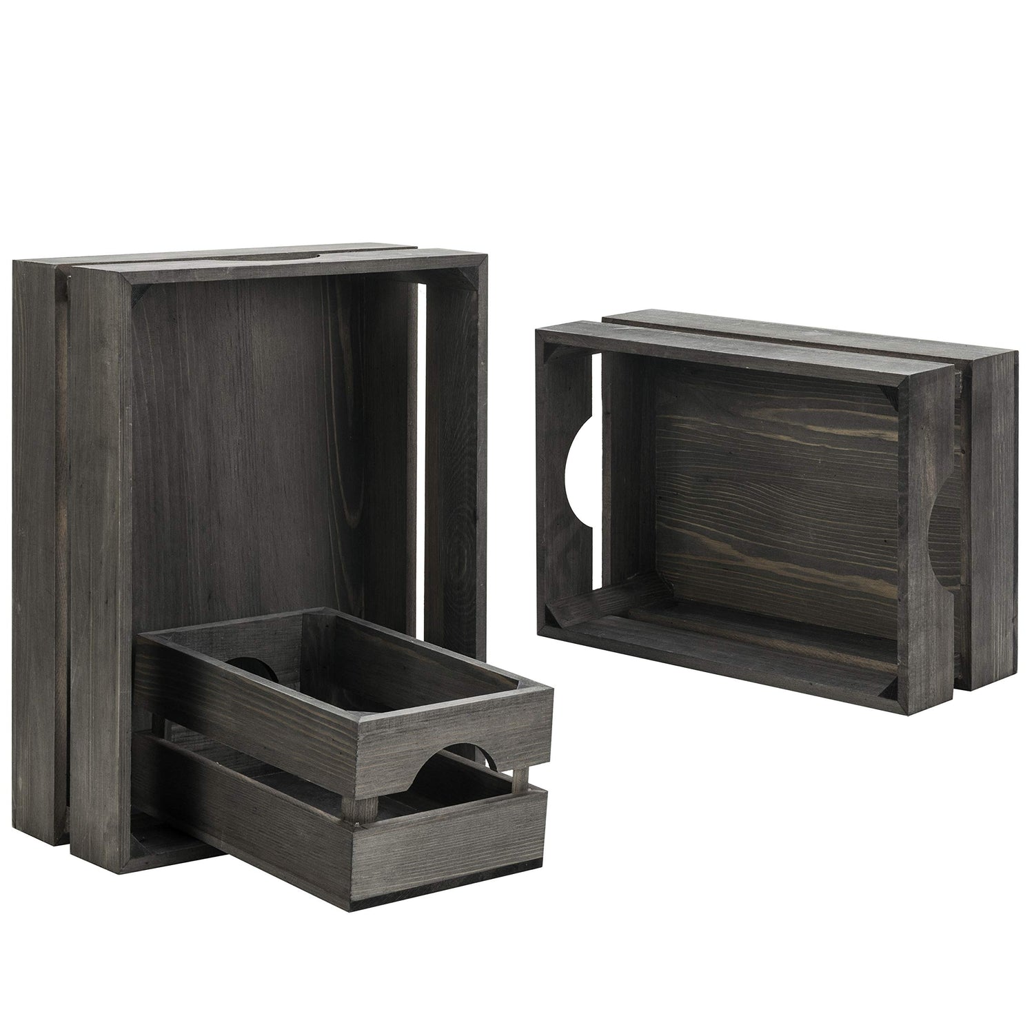 MyGift Rustic Gray Solid Wood Storage Organizer Box with Handle, 3 Piece Various Size Decorative Nesting Crate