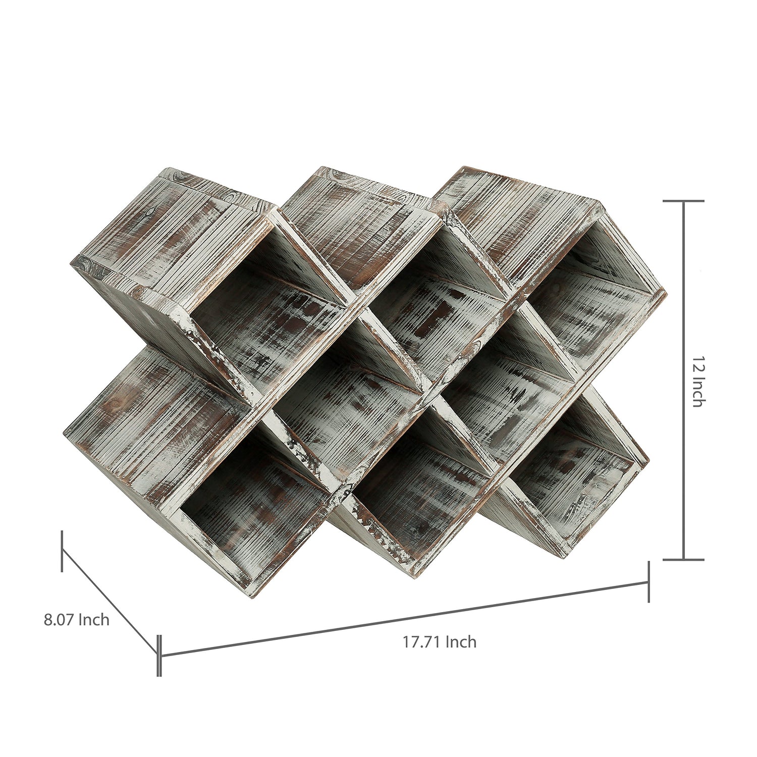 - Rustic Wood Design: The wine rack is crafted from high-quality torched solid wood, giving it a rustic and elegant look that complements any decor; The geometric design adds a touch of sophistication to your space