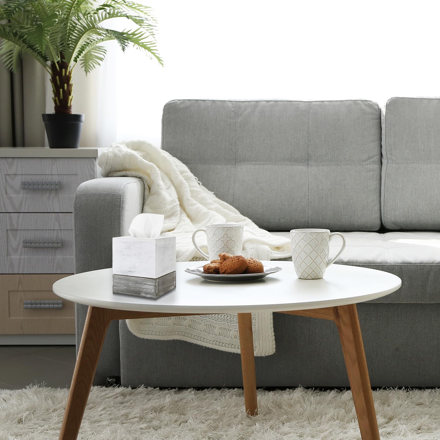 - Vintage white and distressed gray wood square tissue box cover great for keeping tissues easily accessible and disguising unsightly tissue boxes in your home or office