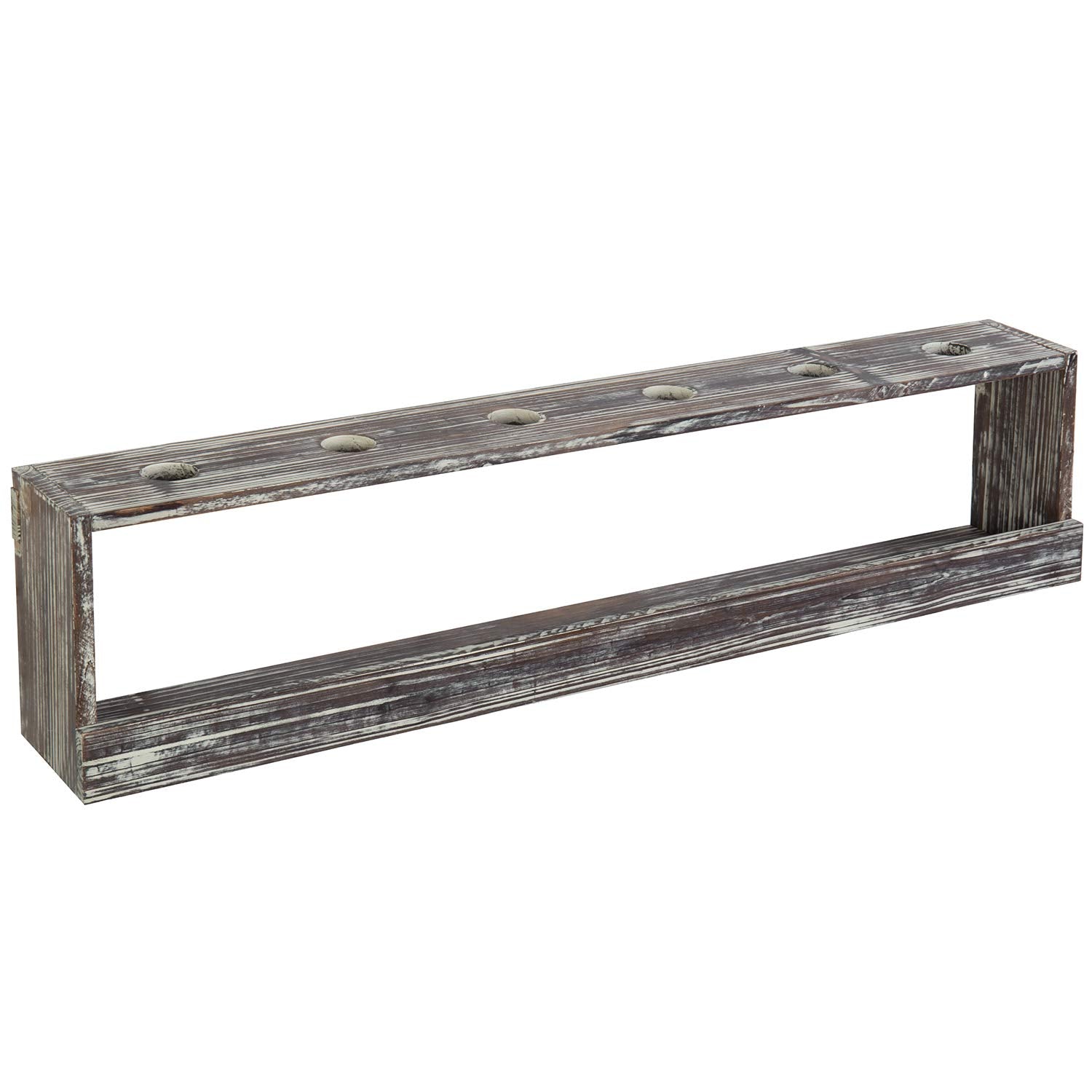 Details: Always have your ping pong paddles and balls ready for your next game with this wall mounted burnt wood ping pong paddle and ball storage shelf. Up to 6 ping pong paddles can be stored on top, with abundant space down below for storing ping pong balls. Featuring a distinctive rustic burnt wood construction, this hanging shelf is a great way to add both functional organization and unique decorative style to any game room or garage. **Paddles and balls not included** **Some assembly required**