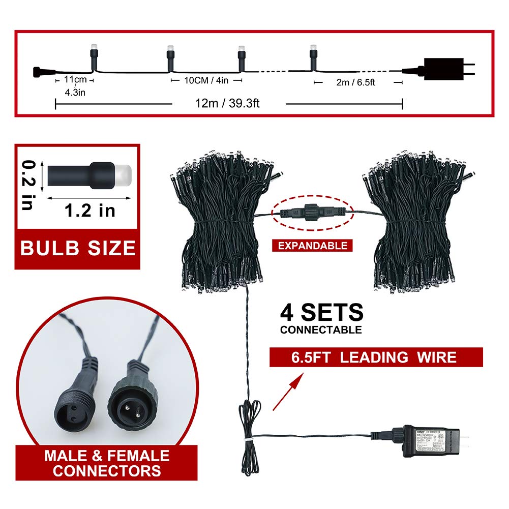 - ✦Extendable: 33 ft length (first light to last light) LED string Lights with Safe Plug, could be extended to a maximum of 10 light chains, from 33ft to 330 ft (maximum 1000 LED)