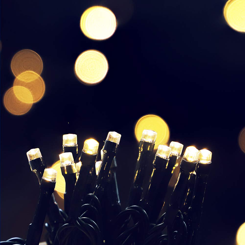 - ✦High Quality Christmas Lights: MYGOTO Warm White string light is 33ft 100 LED with green wire, Christmas string lights are made of 100% Commercial grade bulbs, 30V low voltage plug with UL certified for safe use. Ideal for Christmas, wedding, party, store, bar, mall, home decoration, living room, backyard, fashion show, club, etc.