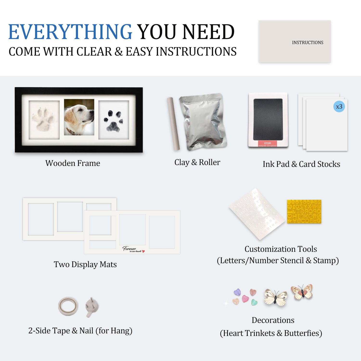 - 【Easy to Create】EveryThing you need to create the pet memorial keepsake frame is included in our paw imprint kit for dogs/cats.Getting both paw print clay and ink paws takes only 3 steps!Comes with clear and easy to follow instructions,all you have to do is follow along and you'll have a perfect piece!