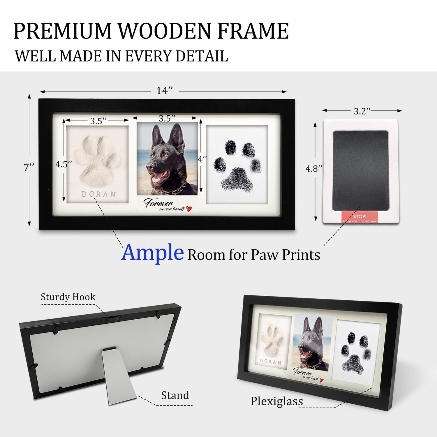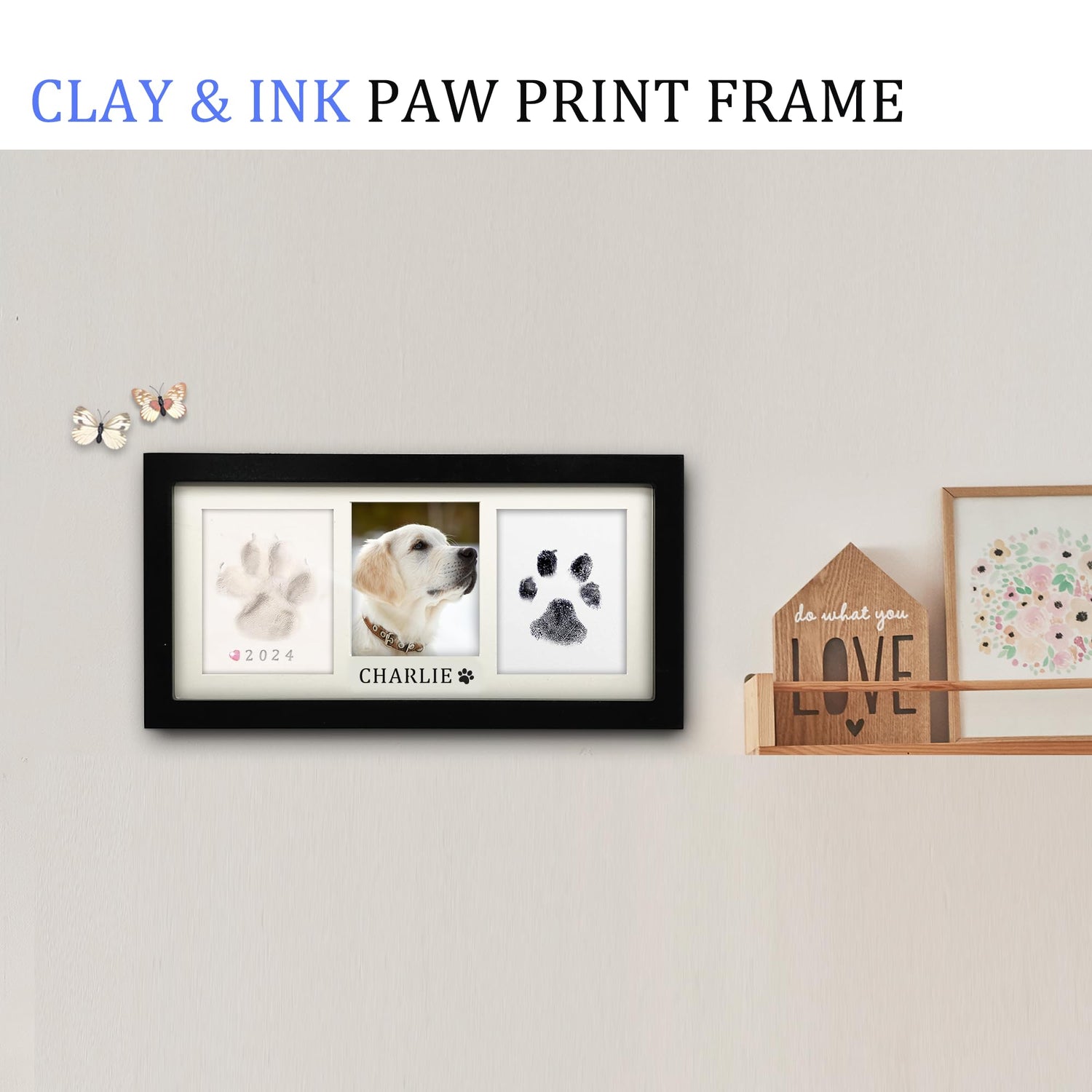 - 【Ink Pad & Paw Print Clay Kit】Different from other's paw print keepsake frames,we offer two ways to get pet's paw prints in our Dog Footprint Kit.Soft Impression Pawprint Clay & Clean Touch Ink Pad.They can be assembled together at the same time to display up together in the pet frame. The two ways work together,Both ways paired together will give you a perfect pet paw print!