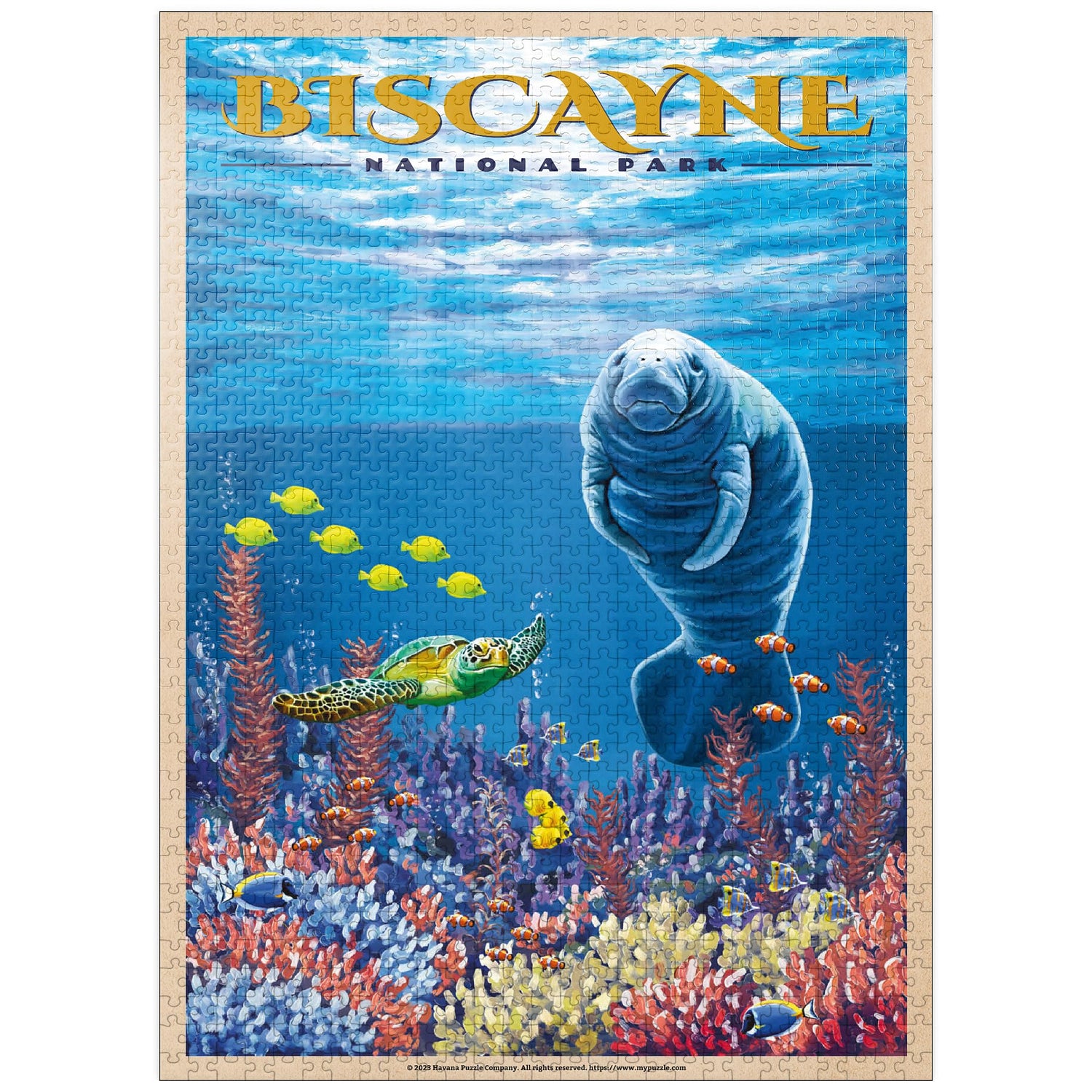 MyPuzzle Biscayne National Park - Manatees Whispering Beneath, Vintage Travel Poster - Premium 1000 Piece Jigsaw Puzzle for Adults
