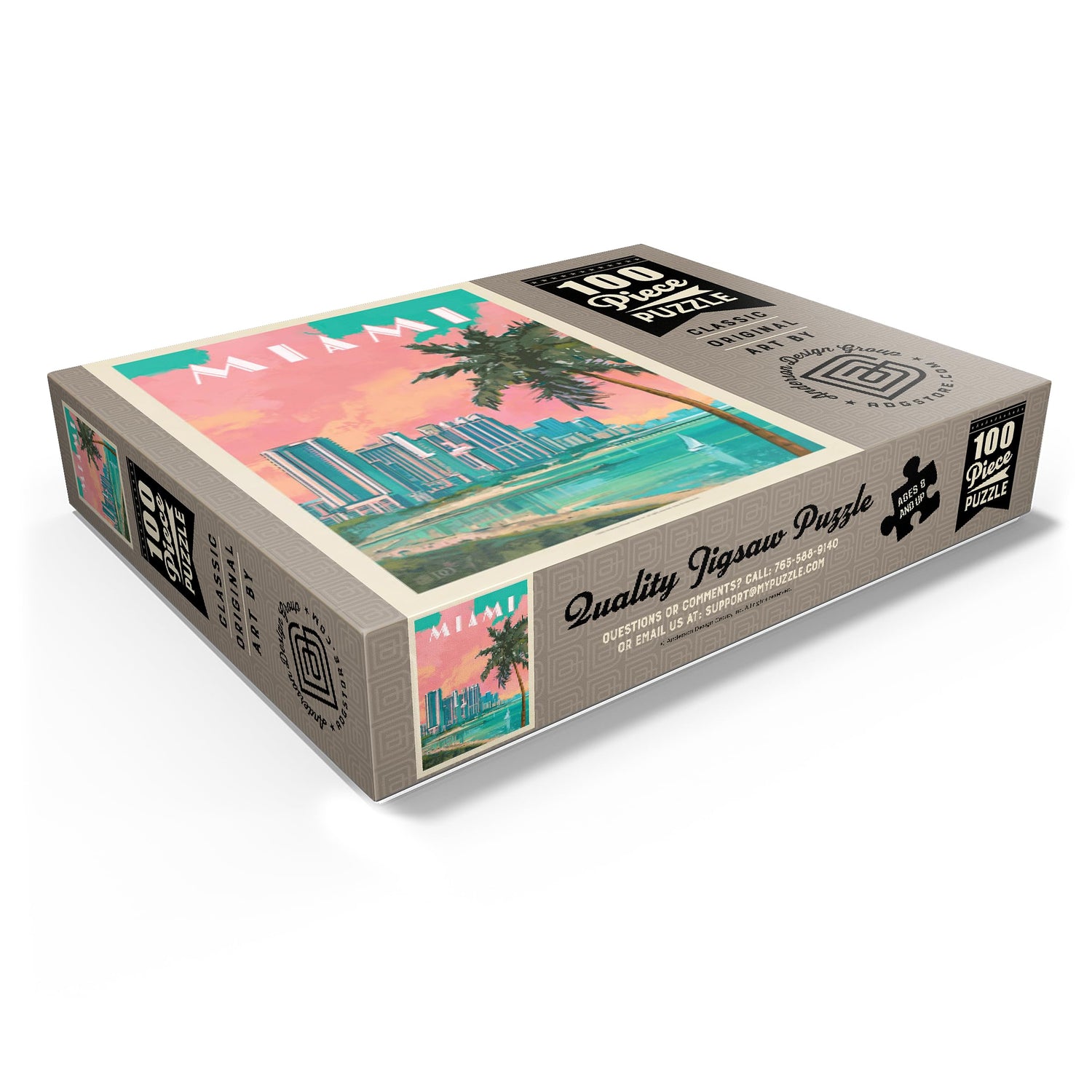 MyPuzzle Miami, FL: South Beach, Vintage Poster - Premium 100 Piece Jigsaw Puzzle for Adults