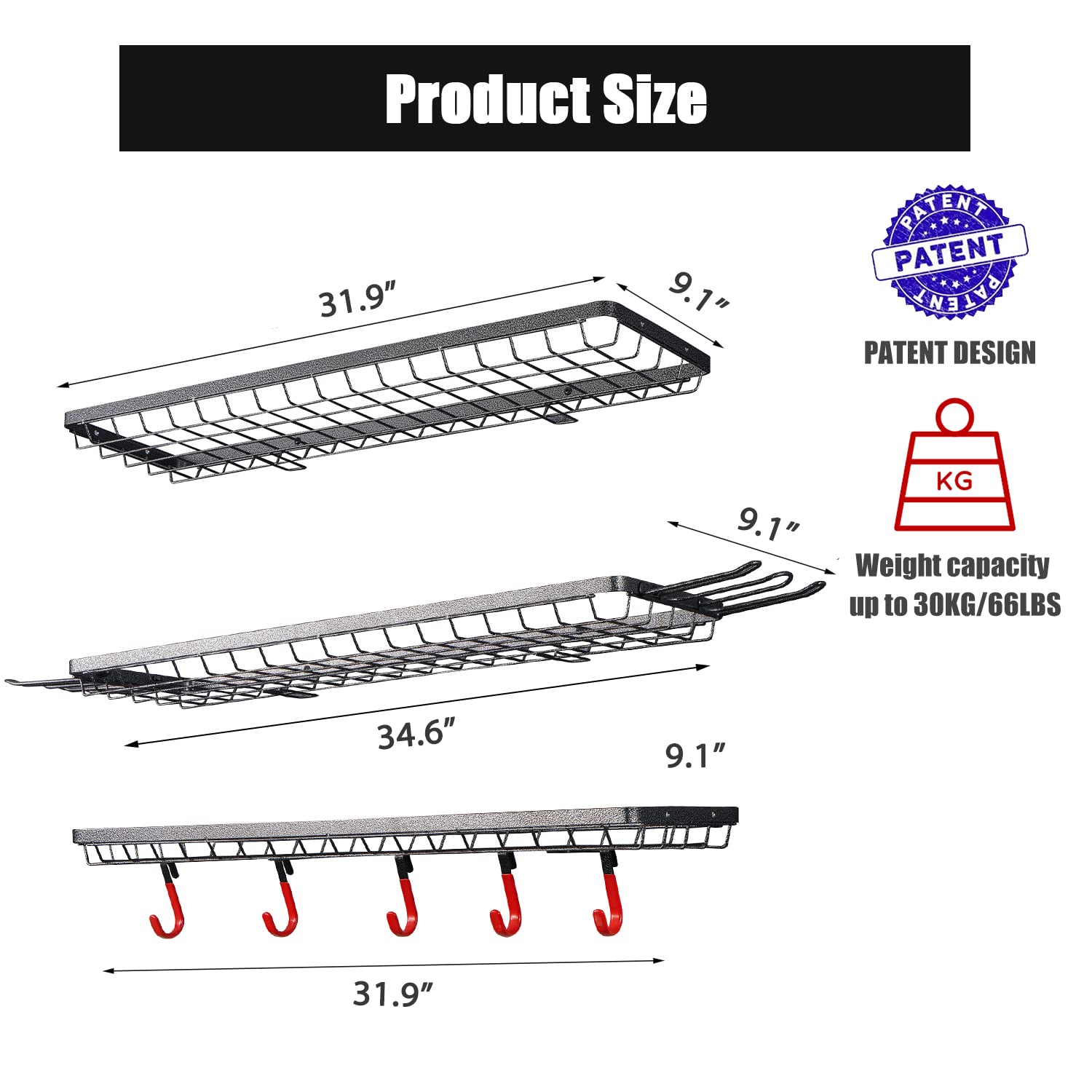 - 【LARGE CAPACITY GARAGE ORGANIZER】: This ball storage rack features steel rack and a variety of hooks, bins and shelves for a complete storage solution. Get your sports equipment organized and off the floor to maximize your available floor space.