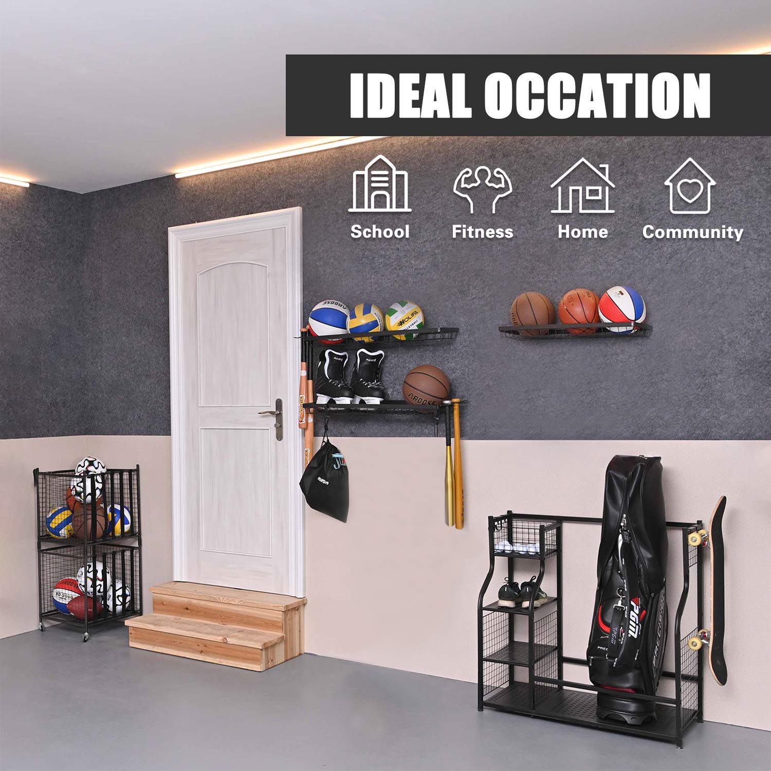 - 【MANY OCCASSION APPLICATION】: This sport rack storage organizer is ideal for garage, basement, playgroup, gym, schools and any other workplace.It Keeps the sports equipment items easily reach and well-organized.