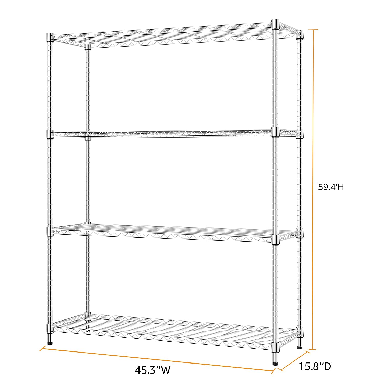 MZG 1400 lbs 4 Tier Storage Rack Metal Wire Shelving Unit, Storage Standing Household Shelf Organizer for Kitchen Pantry Closet Garage Basement Utility Room, Chrome 15.8" D x 45.3" W x 59.4" H