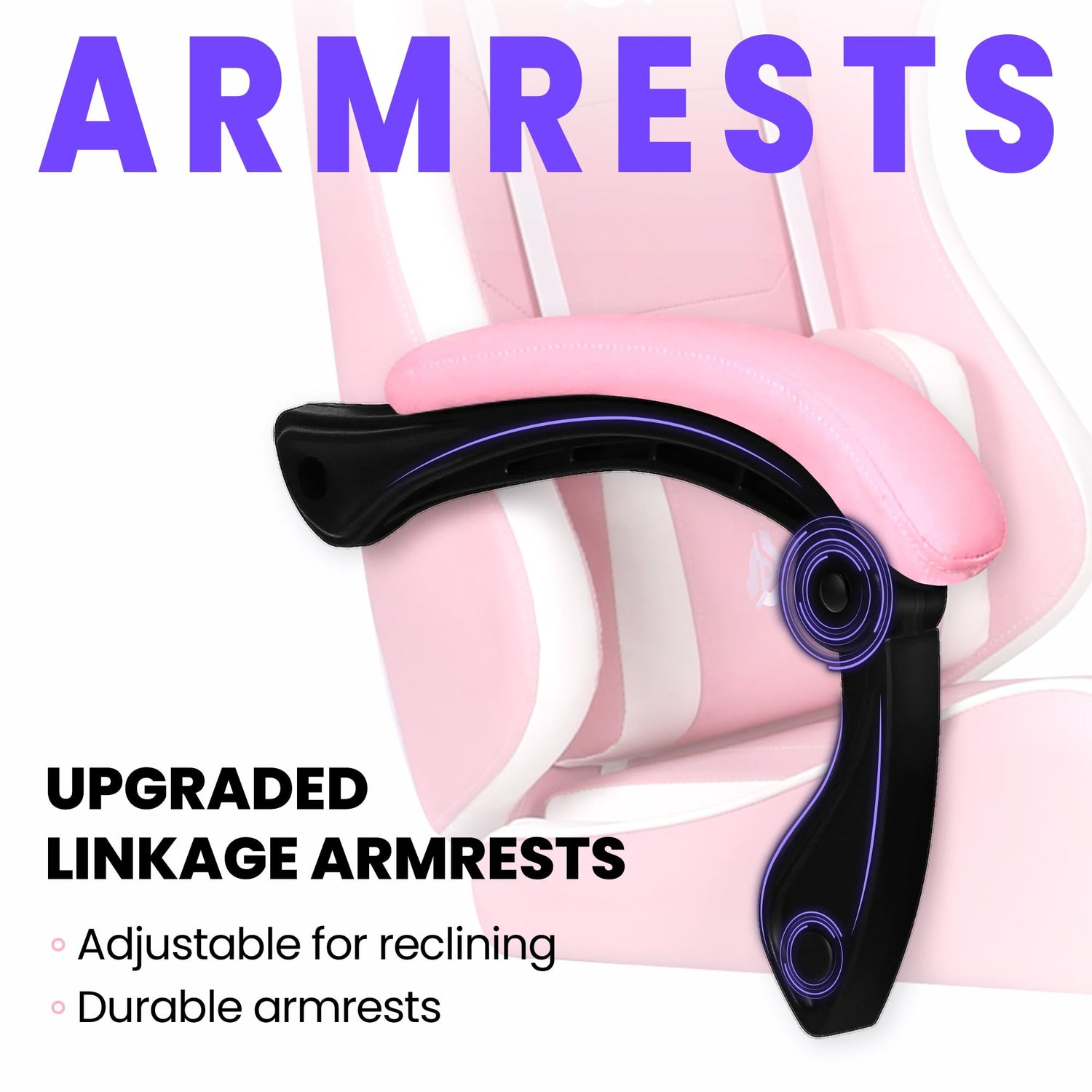 N-GEN GAMING Video Gaming Chair with Footrest High Back Ergonomic Comfortable Office Computer Desk with Lumbar Support Height Adjustable with PU Leather Recliner for Adults Women Men (Pink)